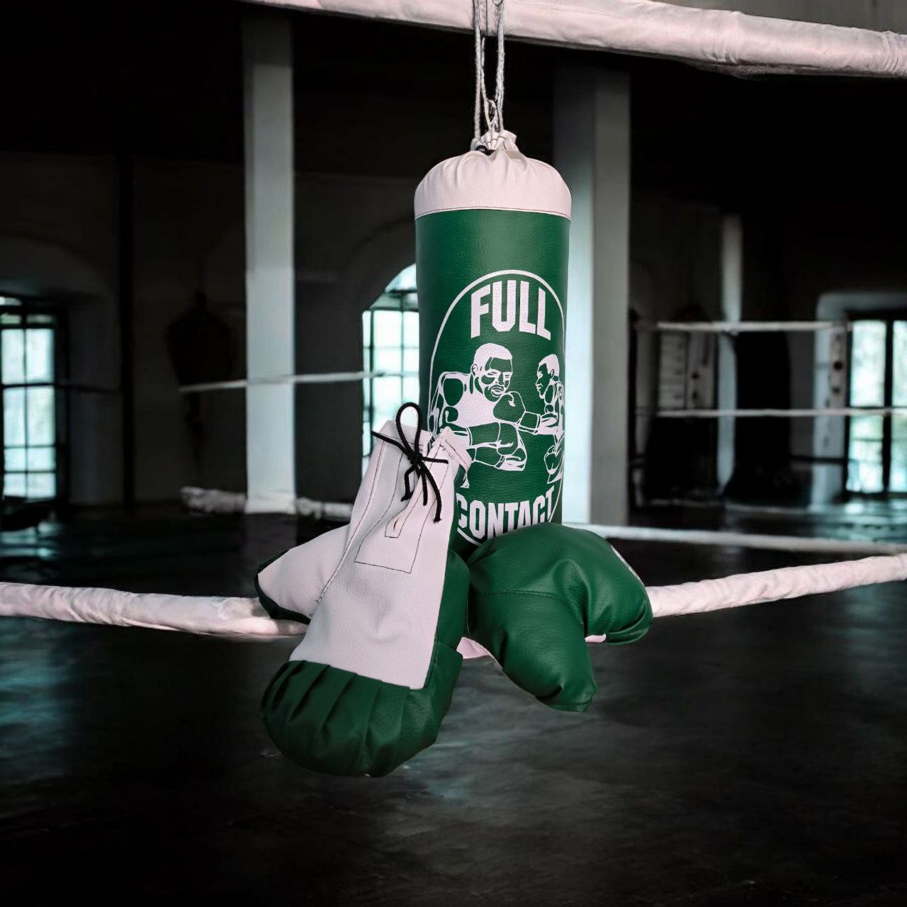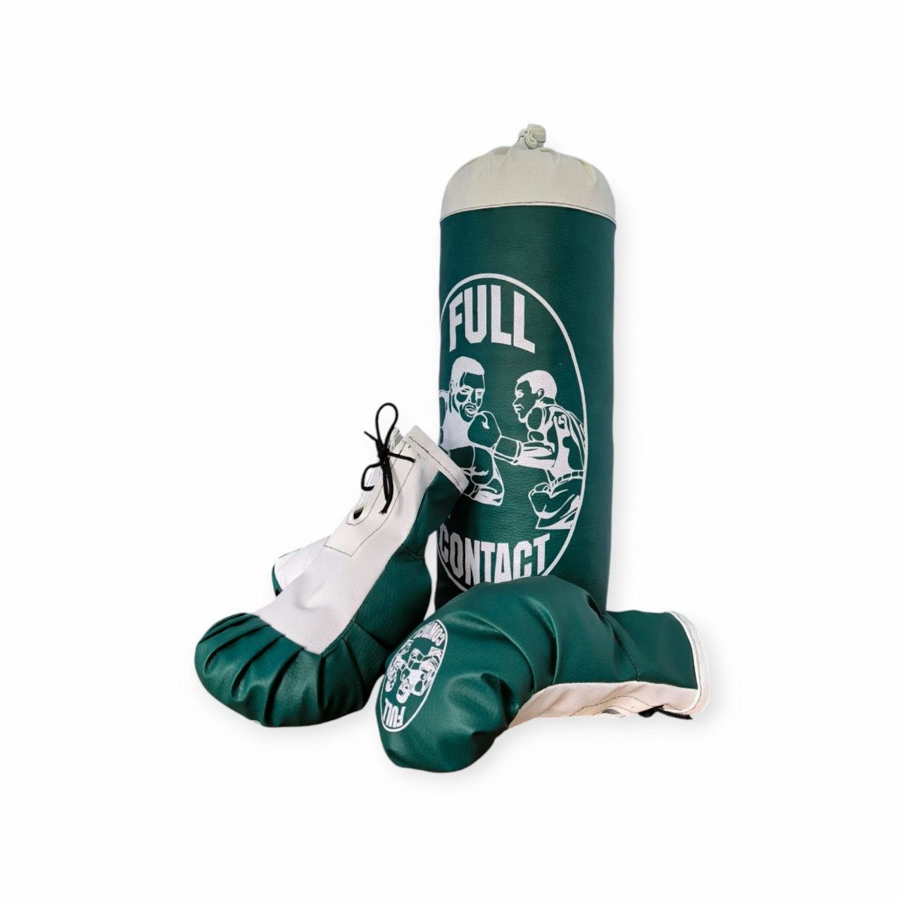 Дитячий набір для боксу включає мішок та пару рукавичок. Мішок виготовлений зі шкірозамінника, наповнений тирсою, рукавички вагою 4 унції виготовлені зі шкірозамінника та текстильних обрізків, спеціально розроблені для дитячих рук, забезпечуючи комфорт та захист. Заняття боксом чудовий спосіб для дітей розвинути координацію, силу, витривалість та виплеснути енергію.