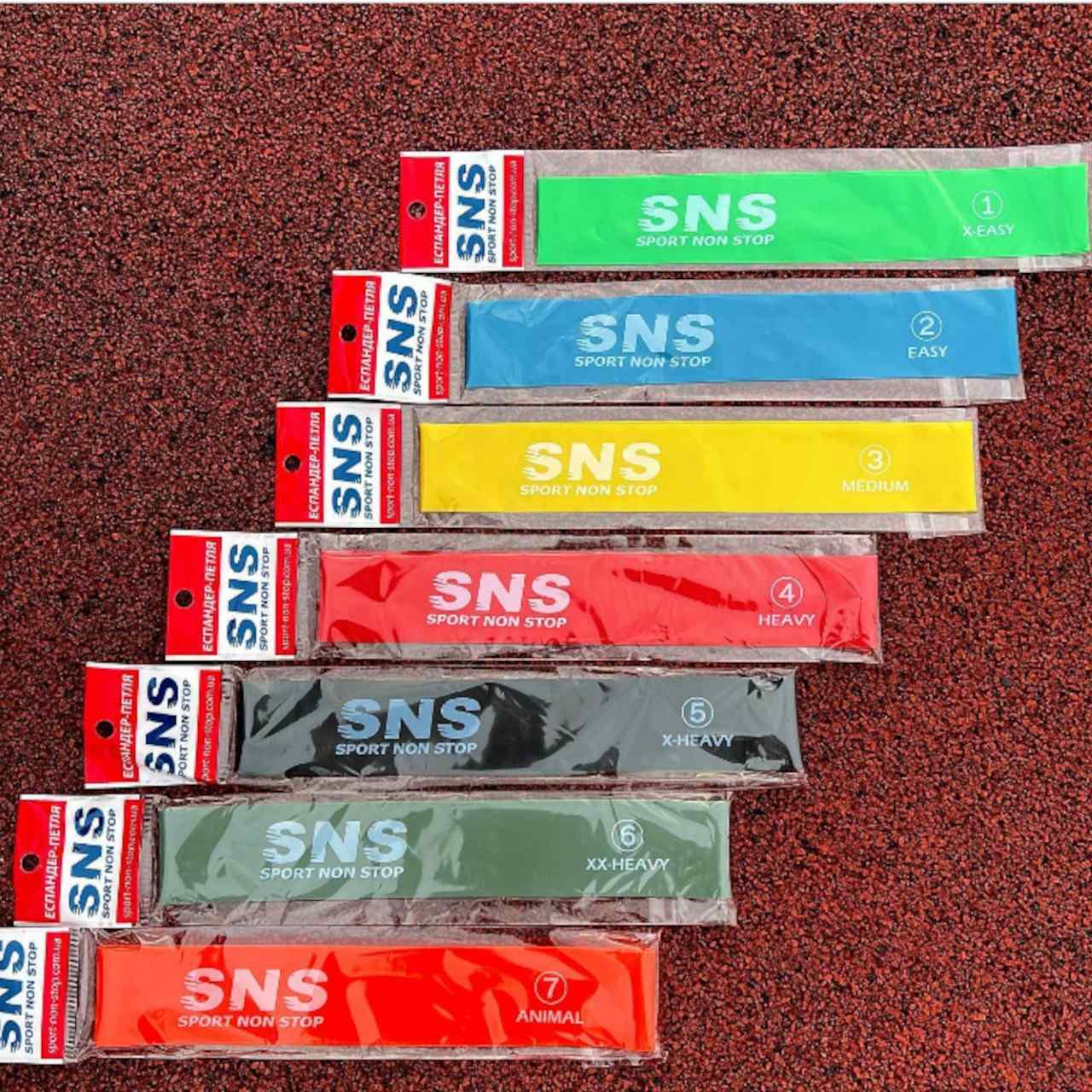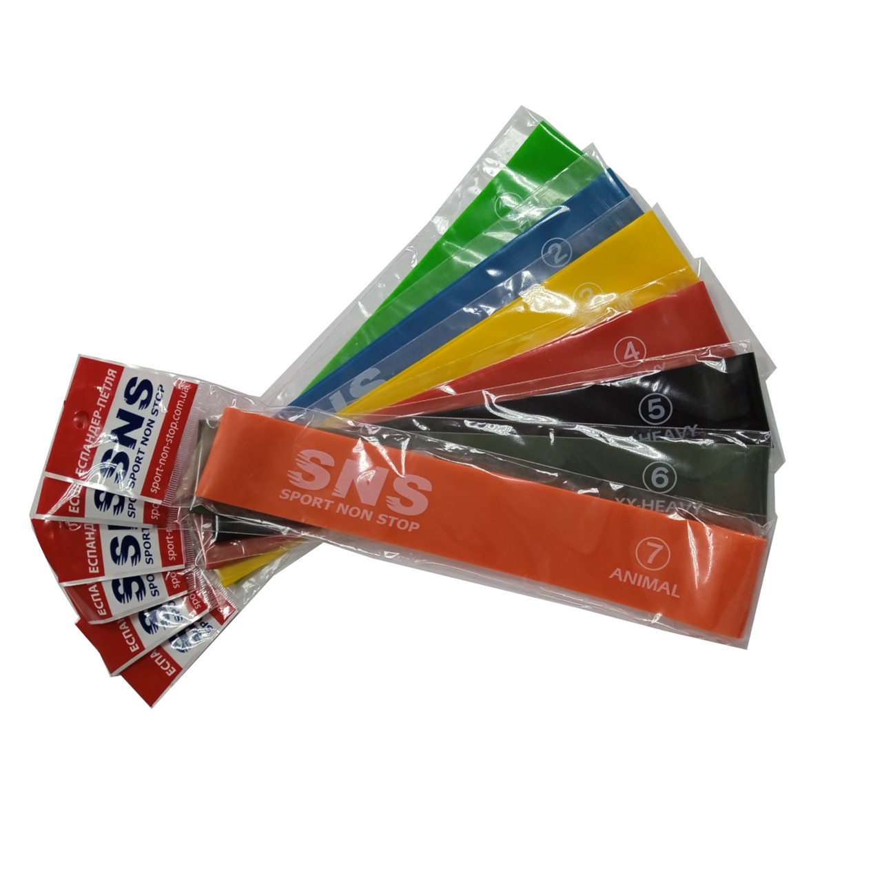 | Комплектація, шт | еспандер-петля SNS ANIMAL № 7 – 1, еспандер-петля SNS EASY № 2 – 1, еспандер-петля SNS HEAVY № 4 – 1, еспандер-петля SNS MEDIUM № 3 – 1, еспандер-петля SNS X-EASY № 1 – 1, еспандер-петля SNS X-HEAVY № 5 – 1, еспандер-петля SNS XX-HEAVY № 6 – 1 |