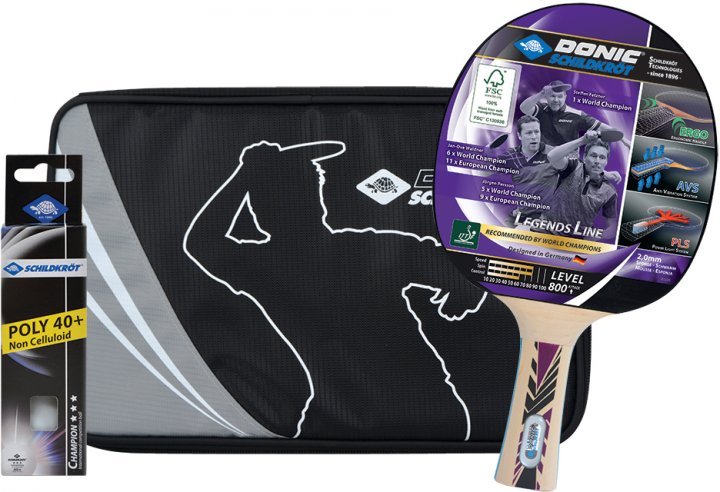 Комплект включає ракетку Legends 800 з губкою 2,0 мм для атакуючого стилю гри, якісний добротний чохол і 3 м’ячики високого класу 3* Champion ITTF.