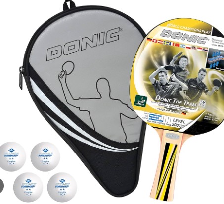 1 ракетка Top Team 500 (губка 1,7 мм, гума Donic 1* ITTF, ручка AVS), високоякісний чохол для однієї ракетки з футляром для м’яча, коробка з 3 х 2* м’ячами Prestige Poly 40+, у новій коробці