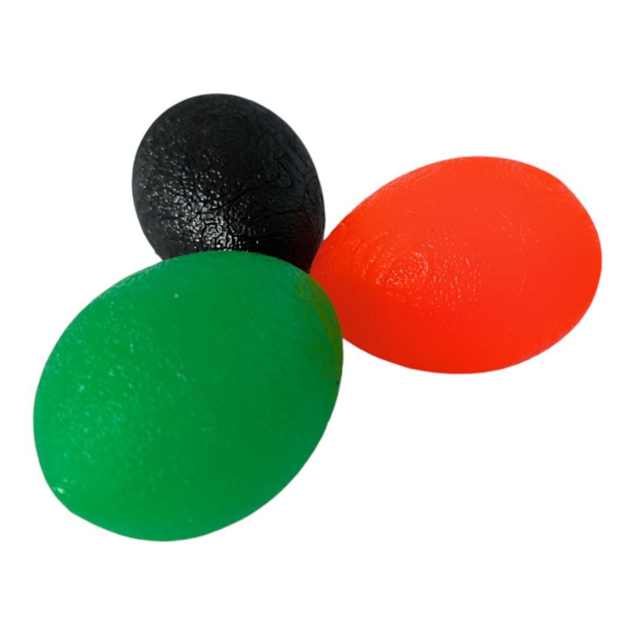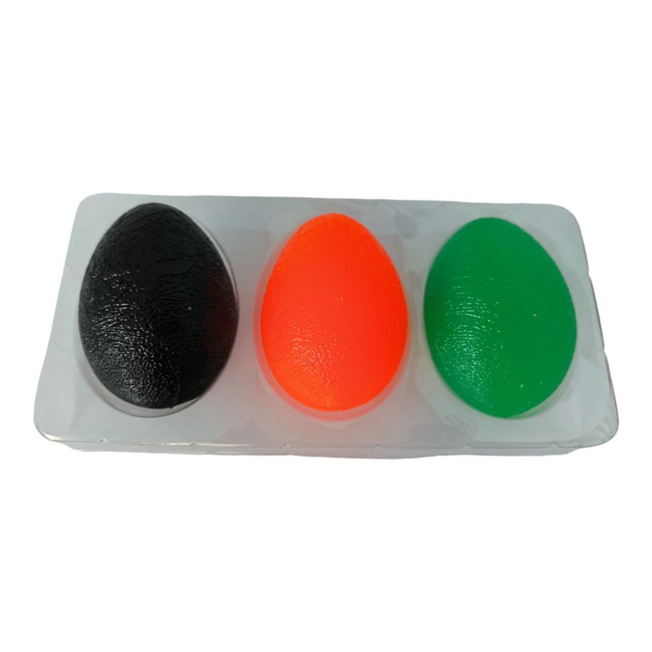 Набір складається з трьох еспандерів різного навантаження, які упаковані у картонну коробку. Еспандер кожного навантаження має свій колір: оранжевий – м’який, зелений – середній, чорний – жорсткий. Еспандер кистьовий призначений для зміцнення кистей та зап’ястей рук, опрацювання дрібної моторики, зняття втоми рук, стимулювання тактильної чутливості, зняття стресу. Регулярно застосовуються під час реабілітації та лікувальної фізкультури. Еспандери виконані у формі яйця.