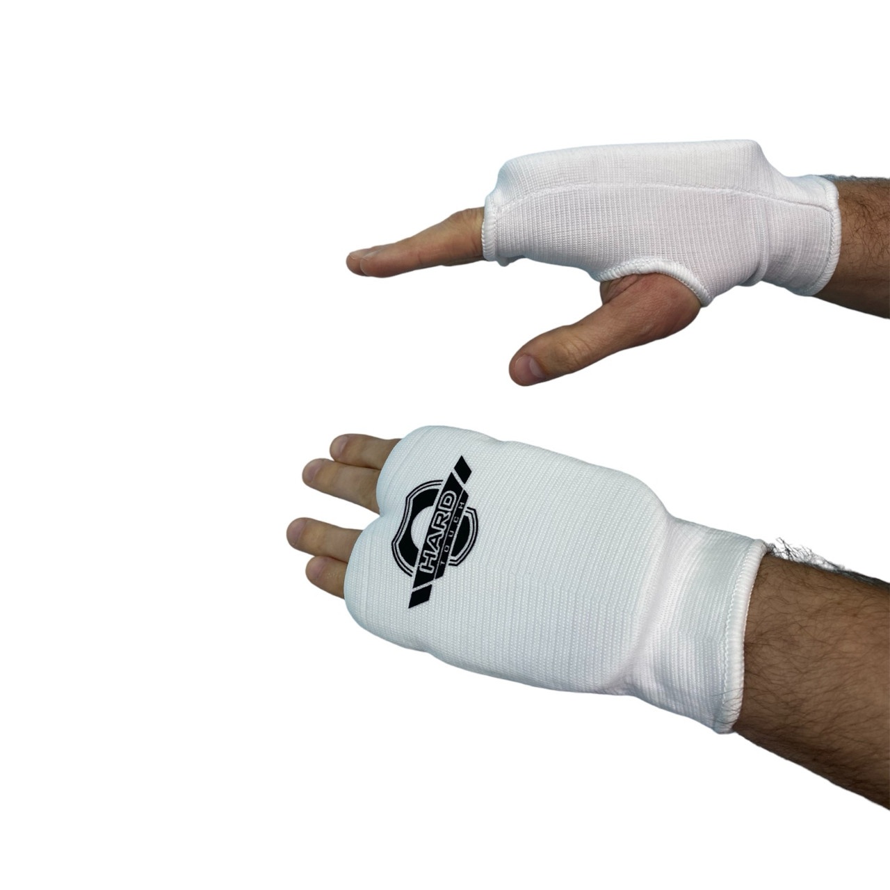 Трикотажні накладки на руки HARD TOUCH з відкритими пальцями, виготовлені з бавовни та еластану з вкладишем, що амортизує, на ударній поверхні. Легкі зі зручною посадкою на руці, забезпечують захист, не обмежуя руху спортсмена.