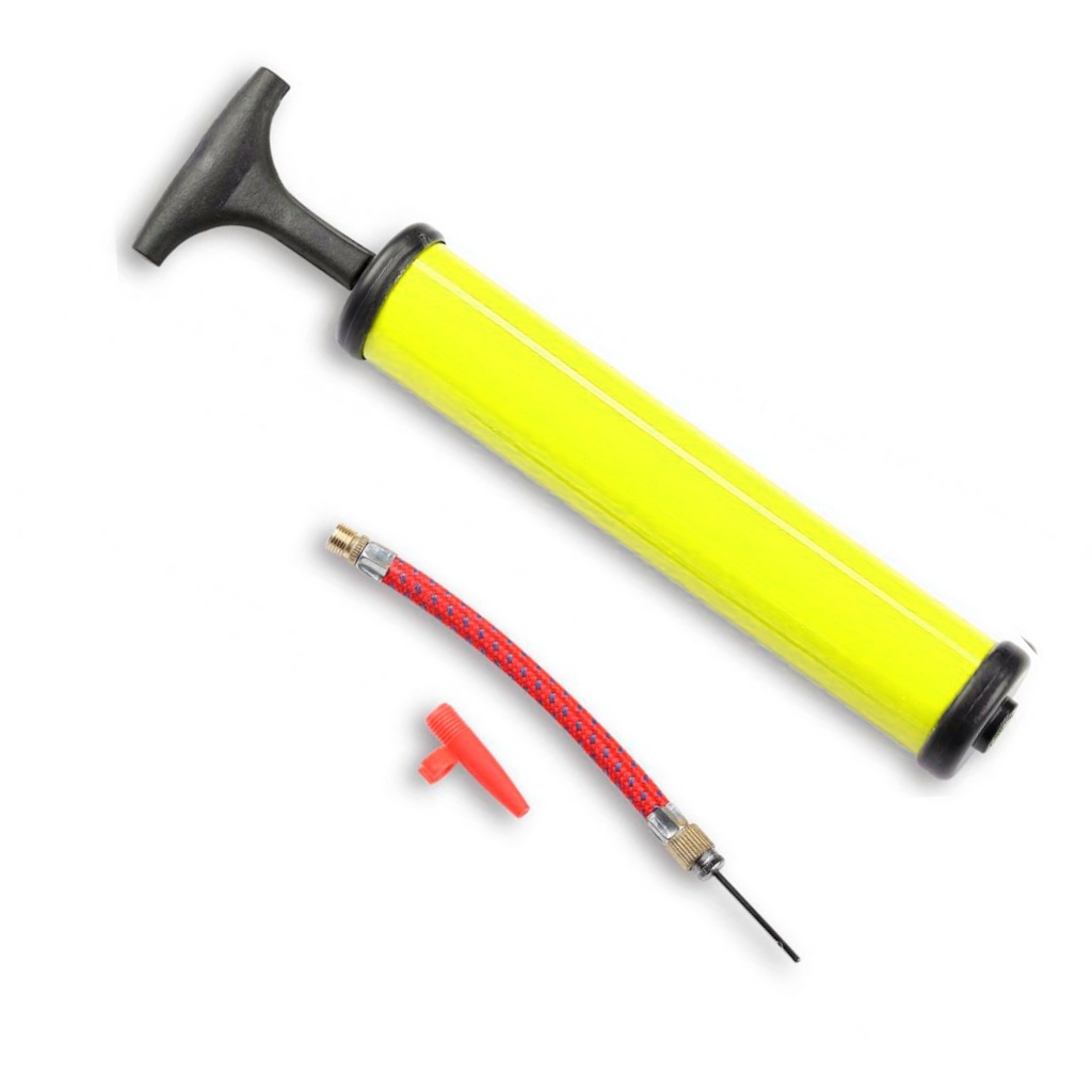 Насос використовують для накачування м’ячів та велосипедних камер. Насос накачує повітря за допомогою поршня. Під час ходу нагору поршень всмоктує атмосферне повітря через односторонній клапан. Під час низхідного ходу поршень витісняє повітря з насоса у виріб, що накачується. У комплекті з насосом поставляється: шлангочка, голка для накачування велосипедних камер та м’ячів, насадка для накачування надувних виробів.