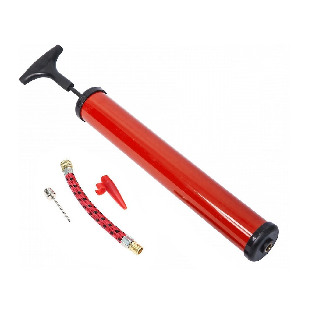 Насос використовують для накачування м’ячів та велосипедних камер. Насос накачує повітря за допомогою поршня. Під час ходу нагору поршень всмоктує атмосферне повітря через односторонній клапан. Під час низхідного ходу поршень витісняє повітря з насоса у виріб, що накачується. У комплекті з насосом поставляється: шлангочка, голка для накачування велосипедних камер та м’ячів, насадка для накачування надувних виробів.