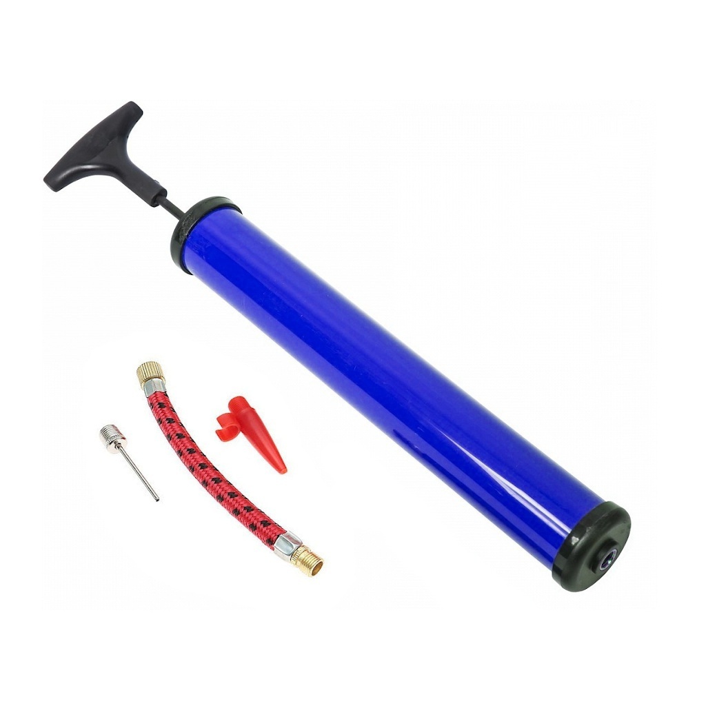 Насос використовують для накачування м’ячів та велосипедних камер. Насос накачує повітря за допомогою поршня. Під час ходу нагору поршень всмоктує атмосферне повітря через односторонній клапан. Під час низхідного ходу поршень витісняє повітря з насоса у виріб, що накачується. У комплекті з насосом поставляється: шлангочка, голка для накачування велосипедних камер та м’ячів, насадка для накачування надувних виробів.