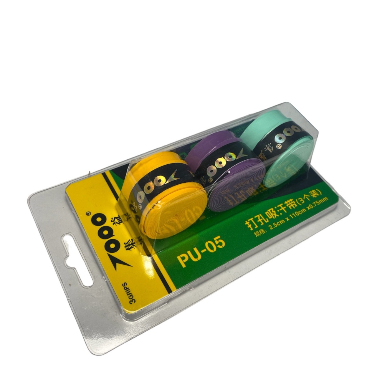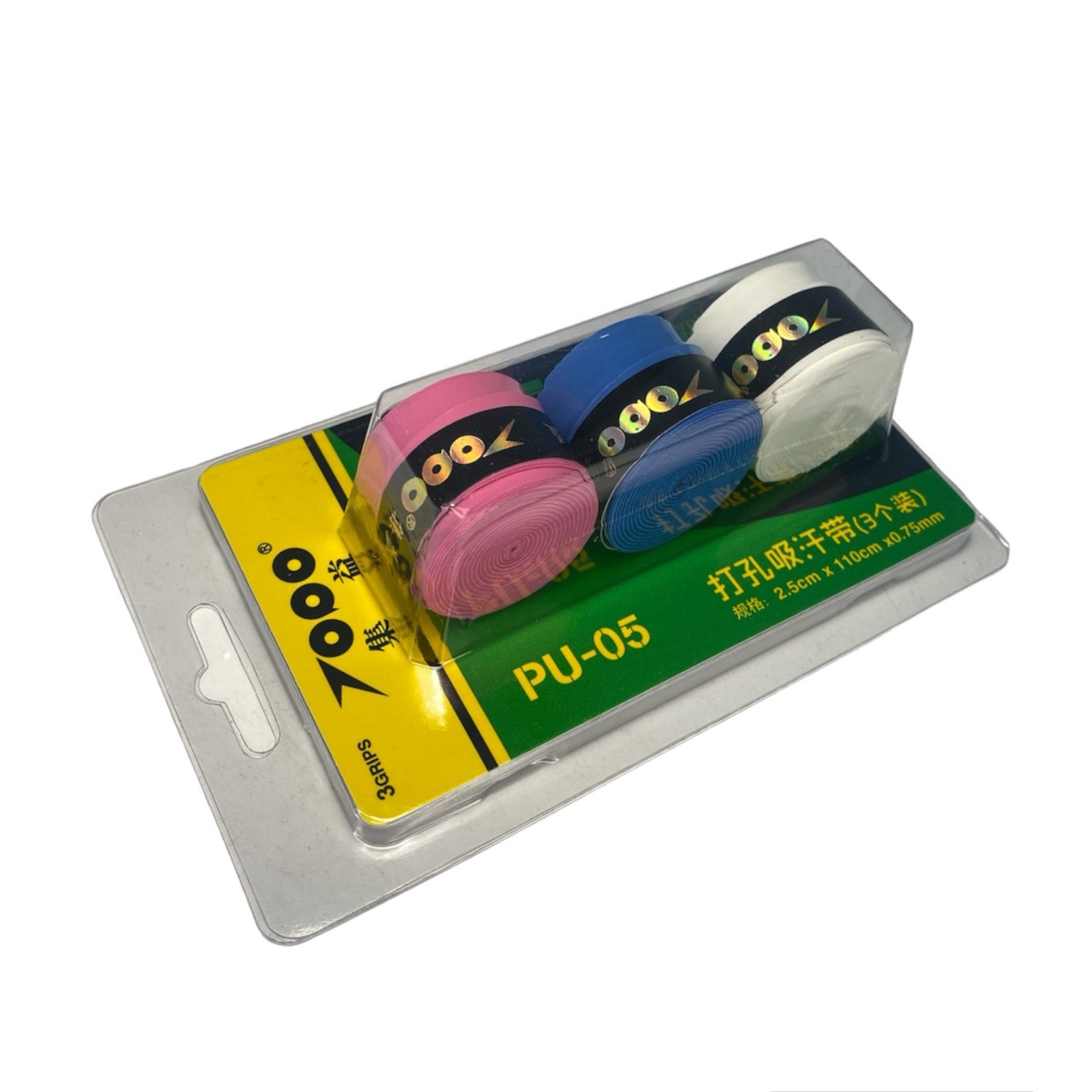 У наборі ви отримуєте 3 обмотки різних кольорів, запаковані у зручний блістер. Це чудовий варіант для тих, хто хоче спробувати різні варіанти або мати запасну обмотку на випадок зносу.
