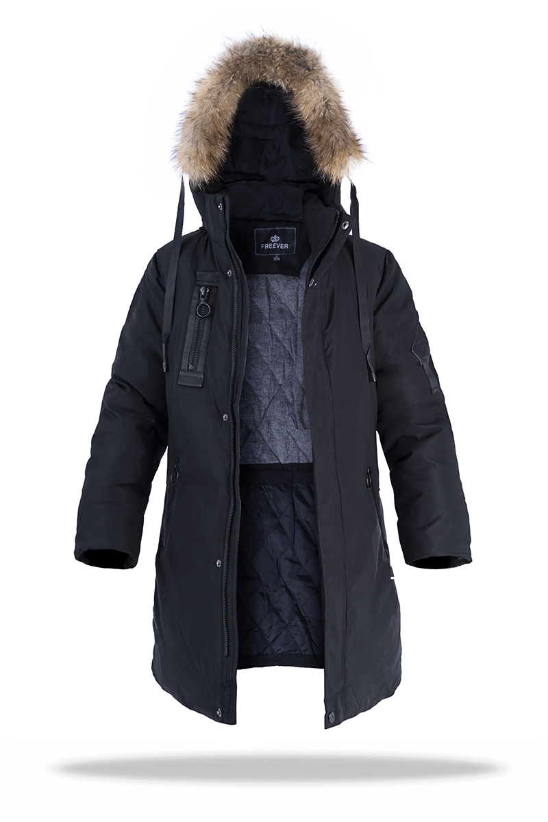 Тепла парка дитяча Freever WF4205 чорна подбає про те, щоби холодний вітер, мороз та мокрий сніг не затьмарив вашій дитині враження від прогулянки. Замерзнути не вдасться! Інноваційний наповнювач із поліефірного волокна на м’якій підкладці забезпечує надійний захист від холоду. А верх з поліестеру з вологовідштовхувальним просоченням надійно захищає від снігу та вітру. Парка застібається на блискавку з одним бігунком та широку вітрозахисну планку на кнопках. Відрізняється стильним, практичним дизайном та гарним функціоналом. Високий комір і знімний каптур надійно прикривають шию та голову від холоду й опадів. Головний убір декорований схемним натуральним хутром з американського єнота. На рукавах передбачені внутрішні манжети із щільного трикотажу. Об’єм талії можна регулювати за допомогою внутрішніх утяжок на фіксаторах. Передбачена одна внутрішня і три зовнішні кишені на блискавці. Модель із нової зимової колекції бренду. Є розміри на хлопчиків молодшого та старшого підліткового віку. Рекомендації по догляду: делікатне прання при температурі не вище 30° гелеподібними засобами для кольорових тканин при локальному забрудненні попередньо можна використовувати рідкий засіб для виведення плям без вмісту хлору віджимання на низьких оборотах не сушити в сушильній машині можлива хімчистка