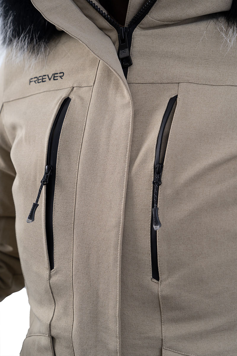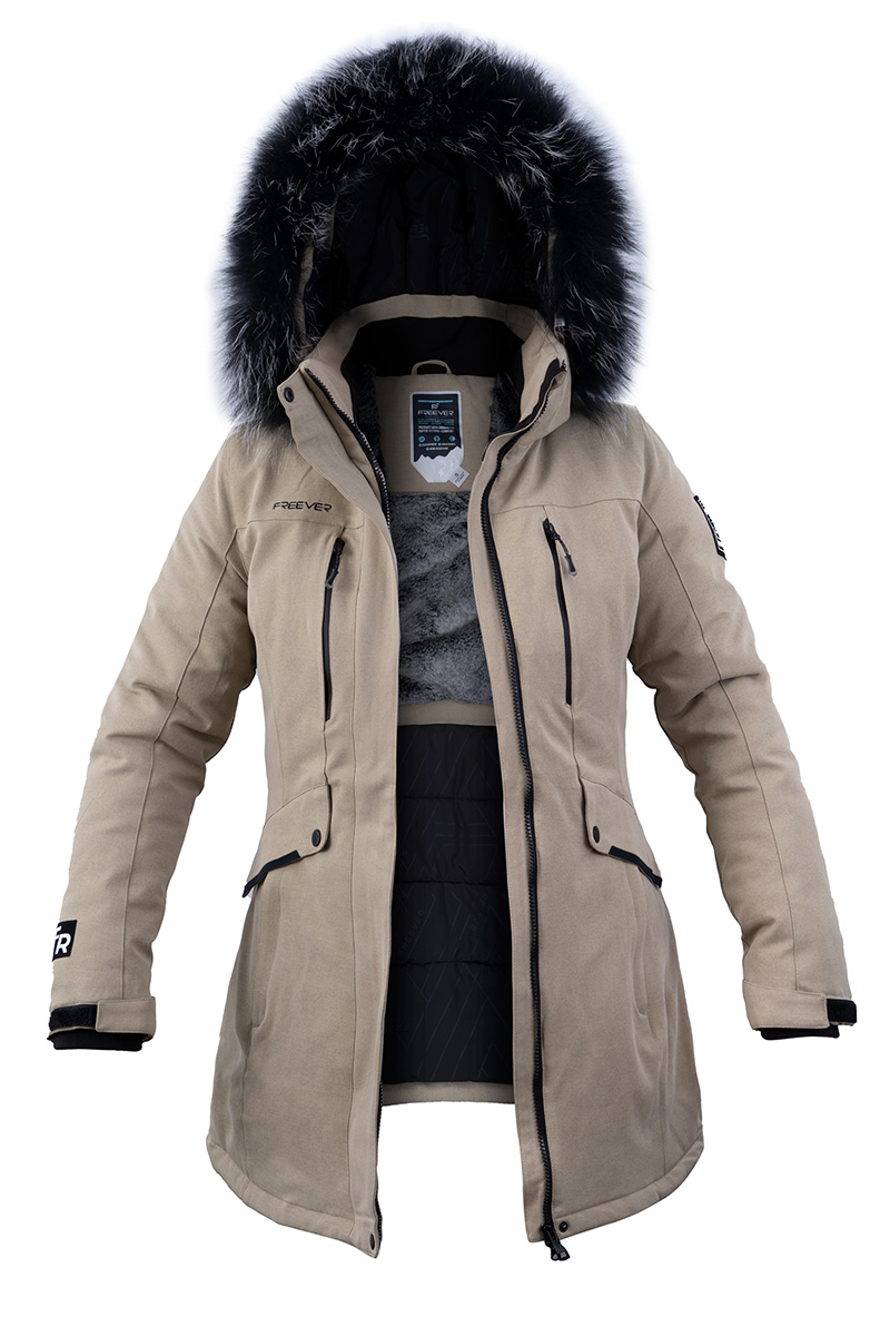 Парка жіноча Freever AF 21628 – стильна та неймовірно тепла, універсальна, максимально зручна та незамінна для холодної пори року річ. Розроблена таким чином, щоб максимально довго зберігати тепло та не дати промокнути. Зовнішня тканина з мембраною захищає від вітру та мокрого снігу. А внутрішня підкладка наповнена суперефективним утеплювачем нового покоління довго зберігає тепло тіла. Обидва шари куртки мають хорошу паропроникність, що повністю виключає всередині ефект «сауни». Усі шви проклеєні. Центральна блискавка – з двома бігунками. Для найкращої герметичності її прикриває широка вітрозахисна планка на кнопках. Внутрішні манжети з еластичного трикотажу, а зовнішні – регулюються на липучках. Капюшон прикрашає натуральне хутро з американського єнота. Передбачені місткі внутрішні та зовнішні кишені. Рекомендації по догляду: делікатне прання при температурі не вище 30° гелеподібними засобами для кольорових тканин при локальному забрудненні попередньо можна використовувати рідкий засіб для виведення плям без вмісту хлору віджимання на низьких оборотах не сушити в сушильній машині можлива хімчистка