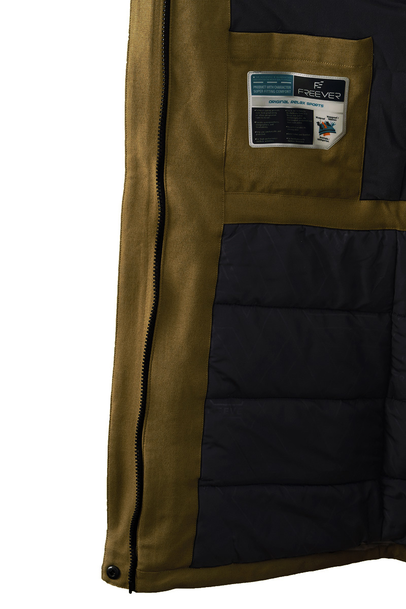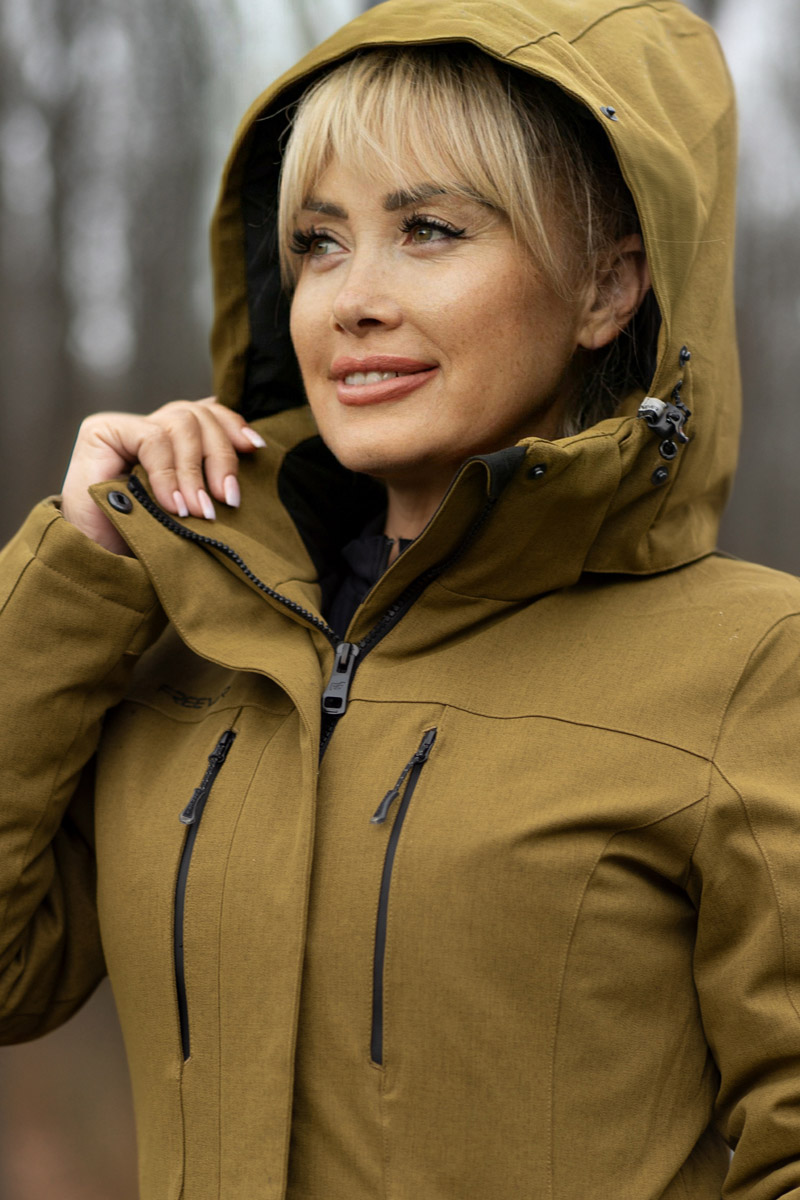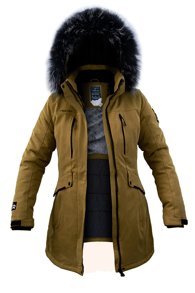 Парка жіноча Freever AF 21628 гірчична – справжній модний мастхев. У новому холодному сезоні обійтися без неї не можна. Стильна, самобутня, водонепроникна, легка і, звичайно ж, тепла. Добре носиться і взимку, і в міжсезоння, даруючи модниці привабливий образ. Верх з якісної мембрани не промокає, не продувається, має добру паропроникність, то ж забезпечує в середині комфортний мікроклімат. Усі шви проклеєні, а підкладка заповнена дуже теплою версією синтетичного утеплювача нового покоління. Куртка зручно застібається на блискавку із двома бігунками, яку прикриває широка вітрозахисна планка на кнопках. Внутрішні манжети – еластичні, а зовнішні – регулюються на липучках. Дві внутрішні та чотири зовнішні кишені без проблем вміщують середню кількість речей. Оздобленням та функціональним доповненням капюшона виступає натуральне хутро з американського єнота. Рекомендації по догляду: делікатне прання при температурі не вище 30° гелеподібними засобами для кольорових тканин при локальному забрудненні попередньо можна використовувати рідкий засіб для виведення плям без вмісту хлору віджимання на низьких оборотах не сушити в сушильній машині можлива хімчистка