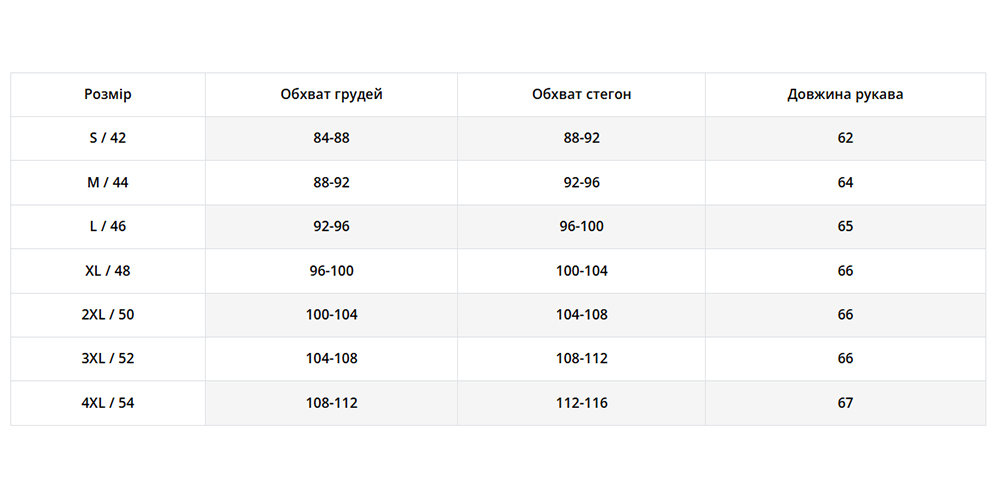 | Розмір | S, M, L, XL, XXL, 3XL, 4XL |