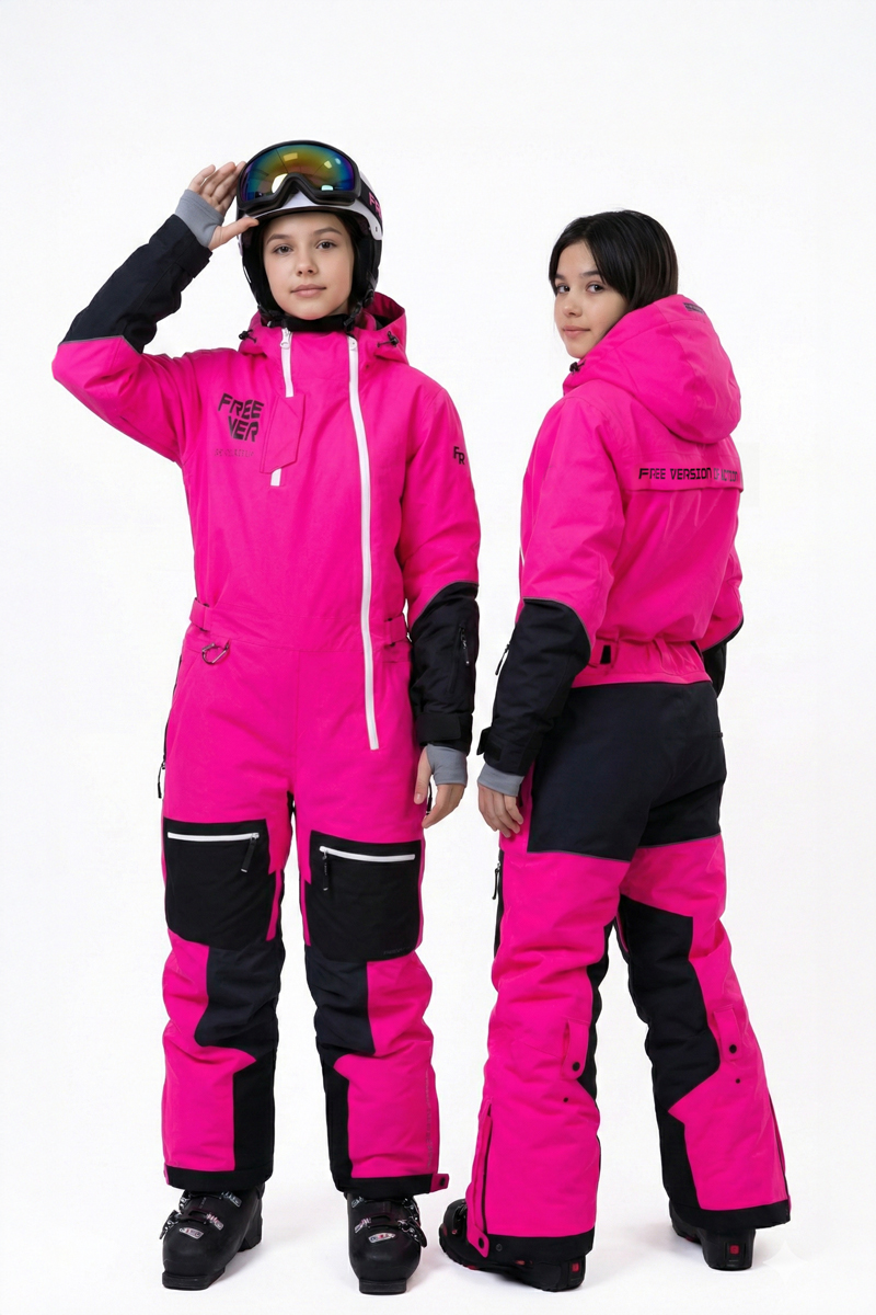 Підлітковий гірськолижний комбінезон Freever NF 21644 у рожевому кольорі створений для комфортного катання в зимових умовах з високою вологістю та низькими температурами. Зовнішній матеріал 4-WAY SYSTEM зі 100% поліестеру доповнений мембраною з показниками водонепроникності 15 000 мм і дихаючої здатності 15 000 г/м²/24 год, що забезпечує баланс захисту та вентиляції під час активного руху.