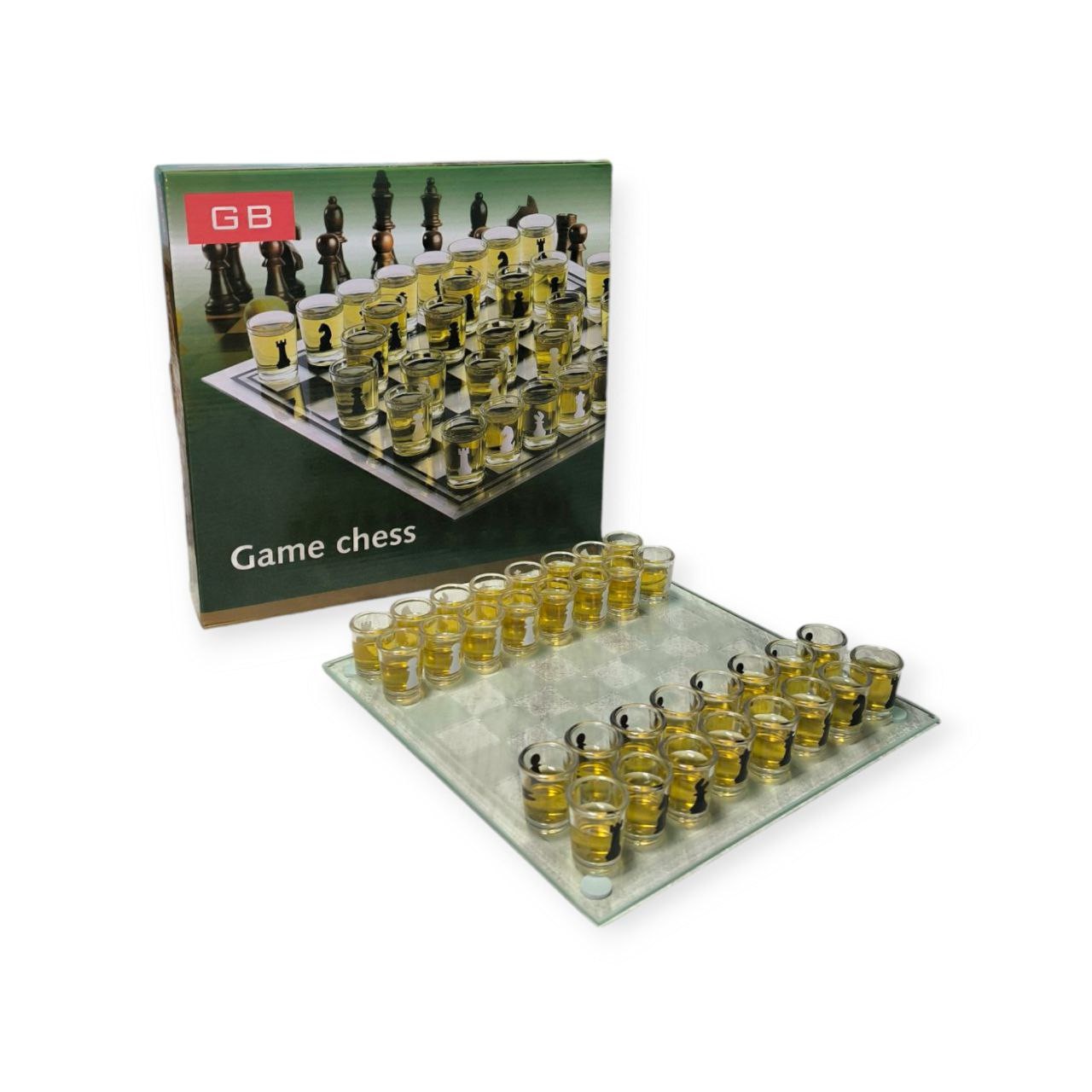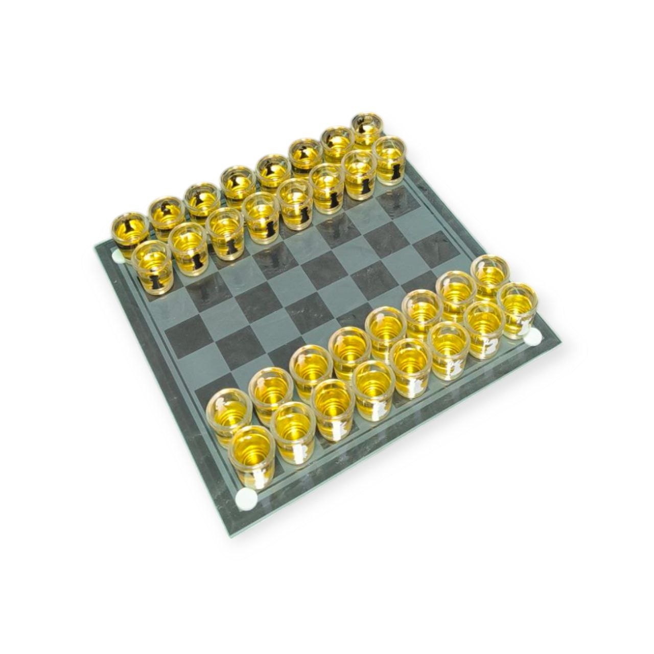“П’яні шахи” – це варіація традиційної гри в шахи, в якій замість звичайних фігур використовуються чарки, наповнені напоями. У комплекті скляна шахівниця розміром 24 см х 24 см. Фігури замінені чарками об’ємом 8 мл. Правила гри залишаються тими самими, що й у традиційних шахах, але з одним доповненням: коли фігура противника «з’їдається», гравець має випити вміст чарки. Гра додає азарту та веселощів у класичну гру.