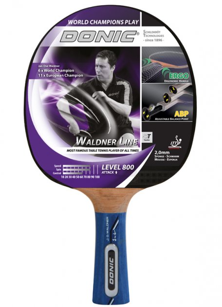 Ракетка для настільного тенісу Donic Waldner 800 чудово підходить для спінів та гри у високому темпі, призначена для гравців просунутого рівня, які віддають перевагу атакувальному стилю гри. Конструктивно модель Waldner 800 являє собою 5-шарову основу Donic Competition із накладками Alpha Slick товщиною губки 2.1 мм і ручкою Senso. Це поєднання створює “швидку” ракетку, що дає змогу робити неймовірні спіни, але водночас не втрачати контролю м’яча. У виробництві ракетки Waldner 800 використано технології PLS, ABP, а також AVS та ERGO grip.