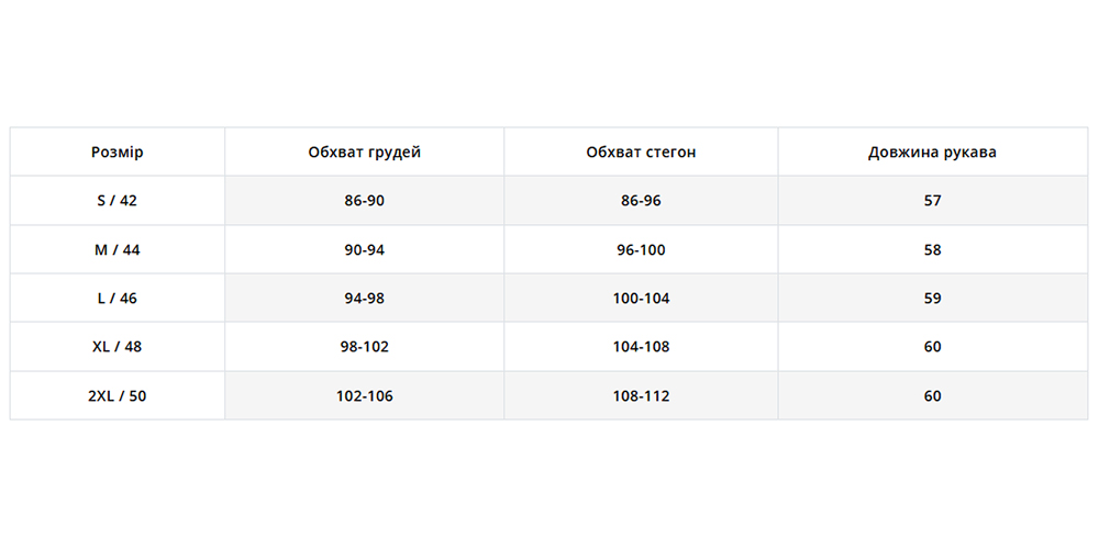 | Розмір | S, M, L, XL, XXL |