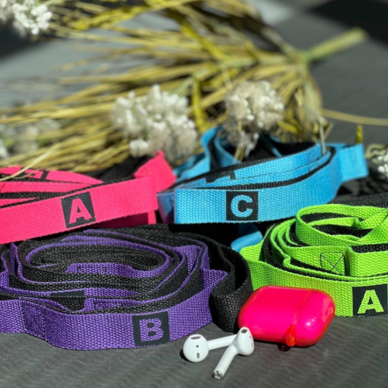 Ремінь виконаний у вигляді замкнутої петлі, яка прошита таким чином, що утворює 2 захвати для рук та 10 петель. Кожна петля промаркована літерою. Використовується для вправ спрямованих на розтяг м’язів та зв’язок.