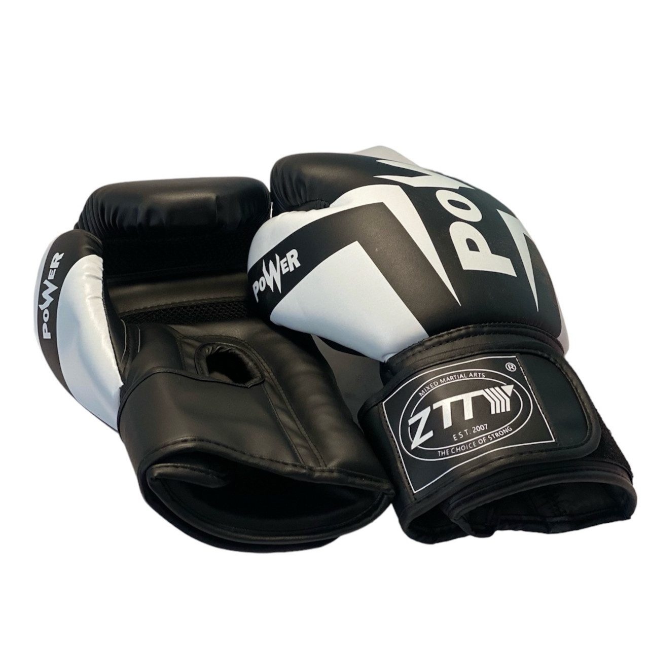 Рукавички боксерські POWER чорні з білими елементами 12 унцій ZTQ-116 ЧБ-12