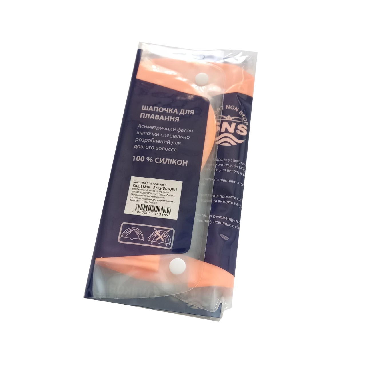 Шапочка для плавання KW від бренду SNS розроблена для дівчат, які мають довге волосся. Під час плавання волосся не вибиватиметься з-під шапочки завдяки тому, що крій шапочки передбачає спеціальне місце для пучка волосся. Матеріал шапочки – високоякісний силікон – стійкий до хлорованої води, тому шапочка збереже свою еластичність та колір протягом усього терміну використання.