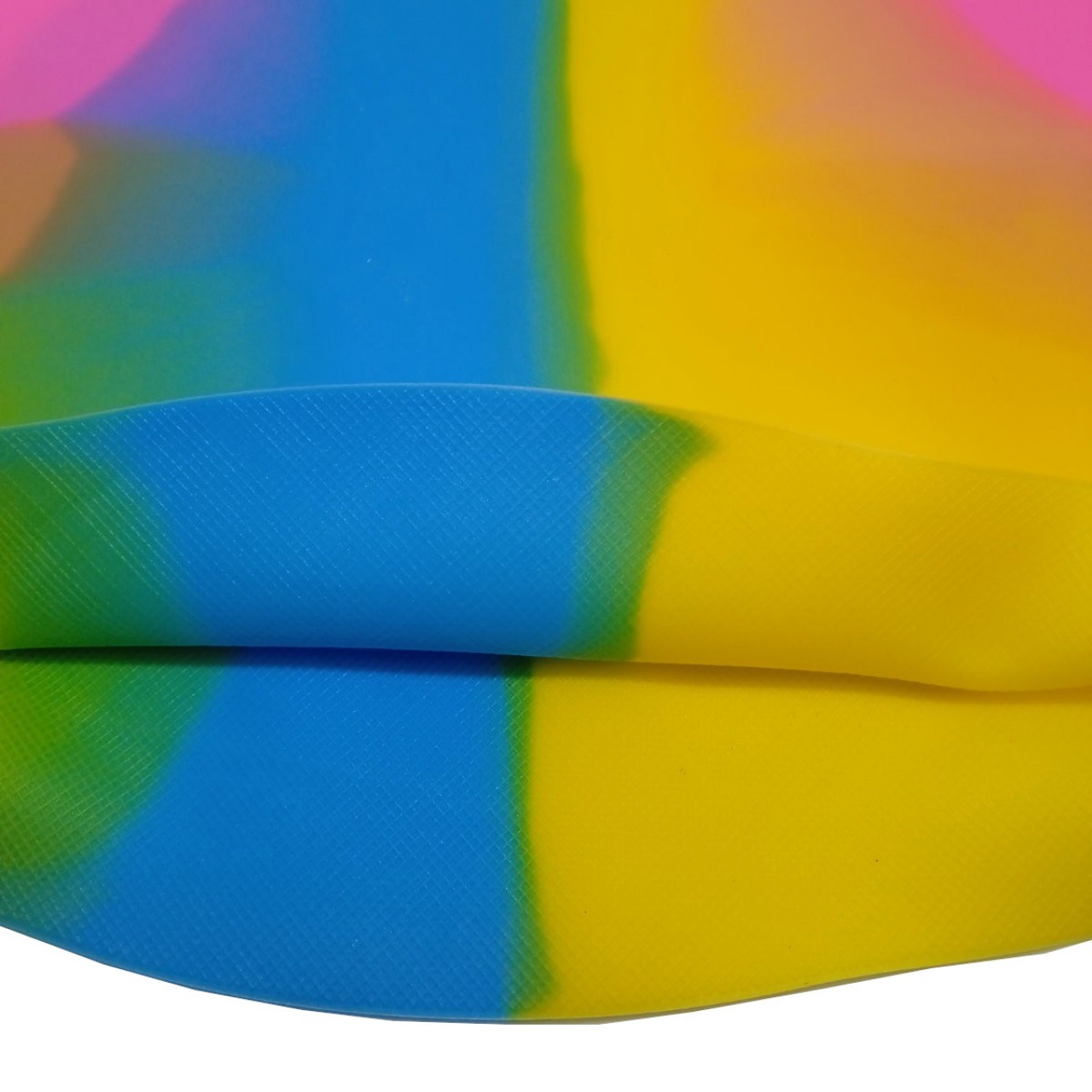Шапочка для плавання SC збільшеного розміру від бренду SNS виготовлена із міцного та довговічного матеріалу – силікону. Шапочка приємна на дотик, легко одягається і гіпоалергенна, вона легко розтягується до потрібного розміру, але в той же час вона добре облягає голову, не формує зморшок і не дозволяє проникнути воді. Внутрішня частина шапочки зроблена таким чином, що волосся не прилипає і не травмується.