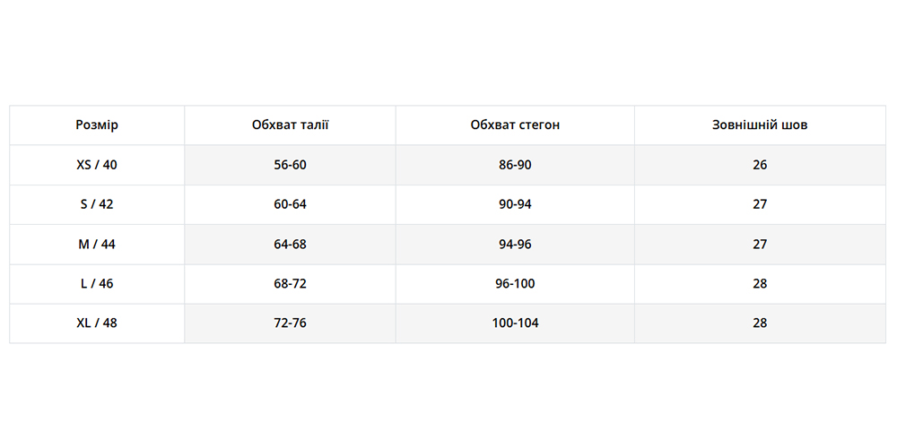 | Розмір | XS, S, M, L, XL |