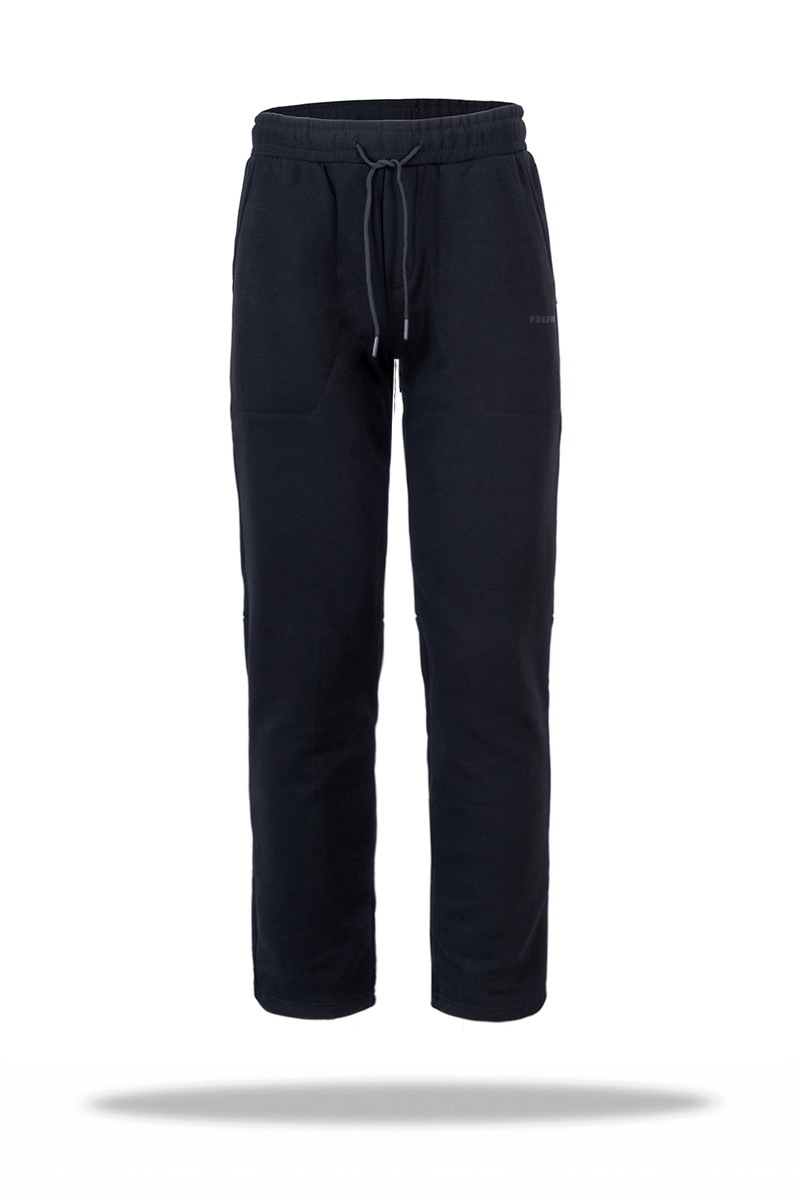 Штани спортивні чоловічі Freever WF 8819 чорні вдало доповнять ваш міський спортивний образ, добре підійдуть для активного відпочинку, занять спортом, прогулянок і послужать зручним домашнім повсякденним одягом. У моделі прямий крій і найпопулярніша середня посадка. А це означає, що штани не обмежуватимуть рухів і дозволять вам почуватися впевнено в будь-якій ситуації. Матеріал пошиття – м’який, міцний та еластичний трикотаж на основі бавовни. Тканина добре зберігає початкову форму і не вимоглива у догляді. Комфортну посадку забезпечують еластичний пояс з утягувальним шнурком. Ліву штанину прикрашає невеликий прогумований напис «FREEVER». У бічних та одній задній кишені ви зможете тримати важливі вам речі. Рекомендації по догляду: делікатне прання при температурі не вище 30° гелеподібними засобами для кольорових тканин при локальному забрудненні попередньо можна використовувати рідкий засіб для виведення плям без вмісту хлору віджимання на низьких оборотах не сушити в сушильній машині можлива хімчистка