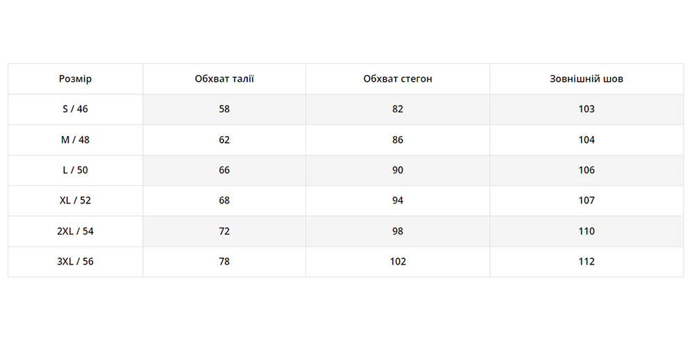 | Розмір | S, M, L, XL, XXL, 3XL |
