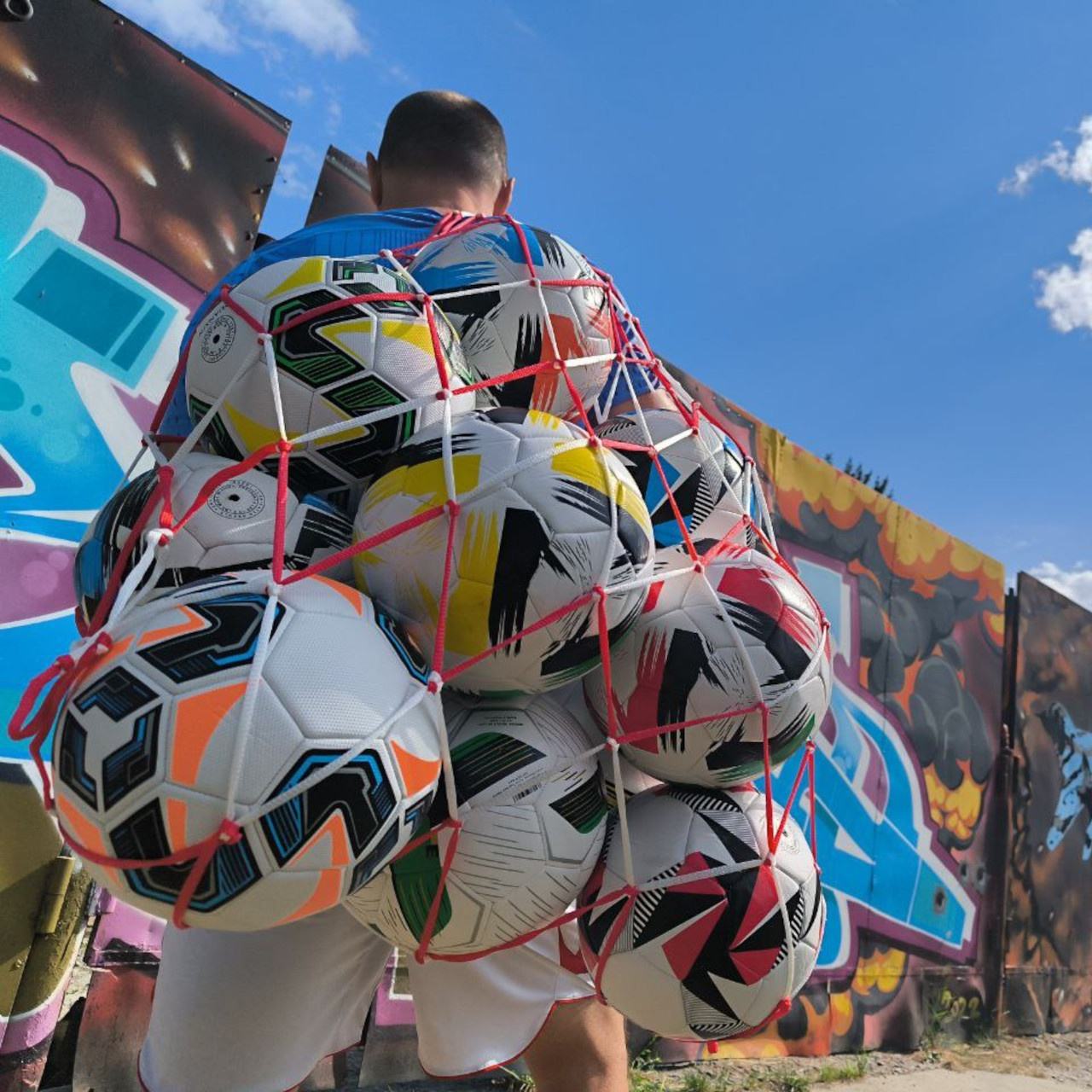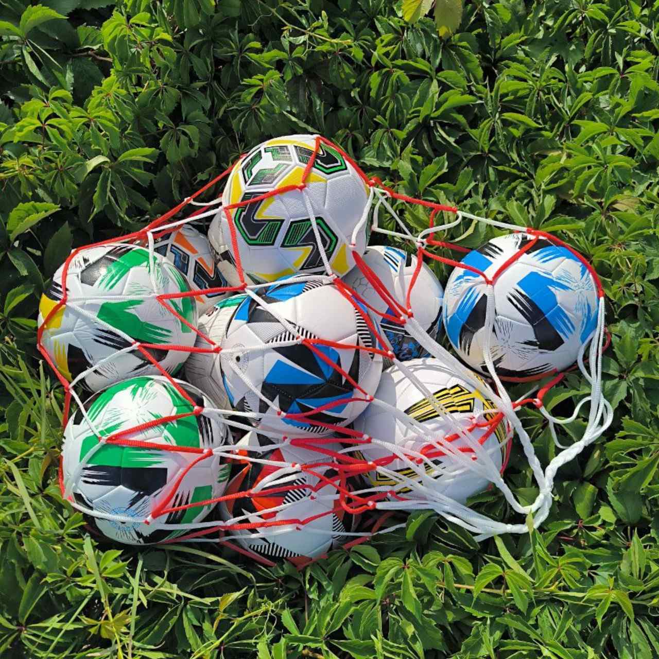 Сітка для перенесення та зберігання 10 футбольних м’ячів 5 розмірів. Шнур має щільне плетіння, сітка для зручності носіння обладнана 2 ручками. Можна використовувати для зберігання баскетбольних, волейбольних, гандбольних та інших м’ячів.