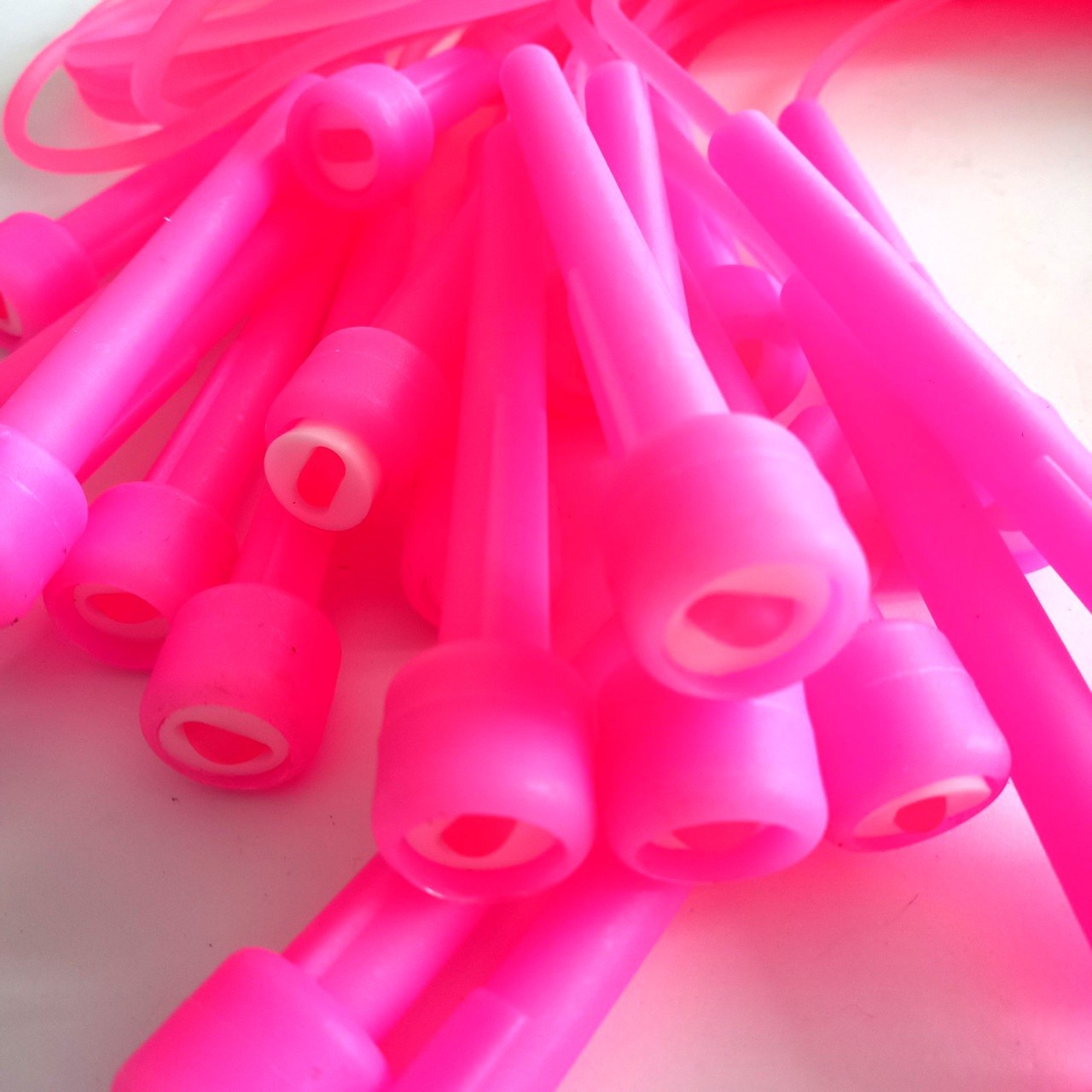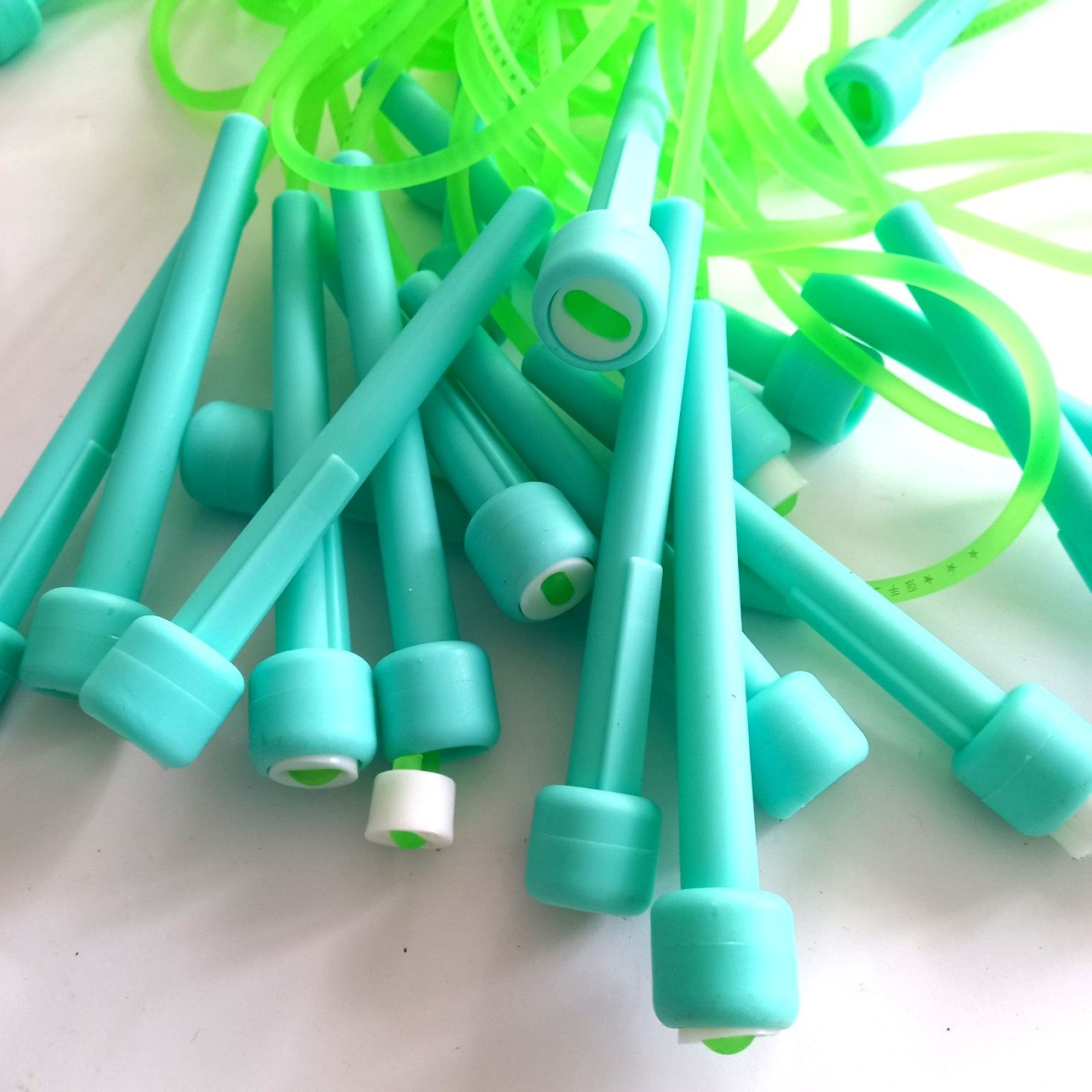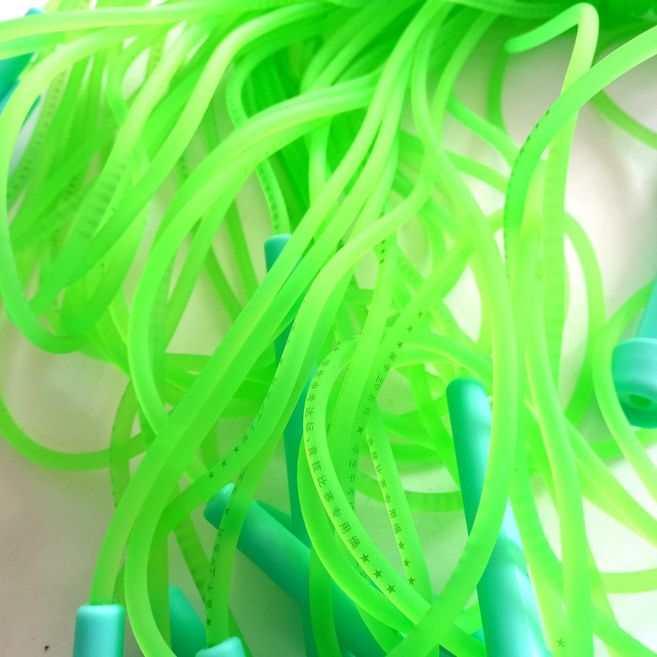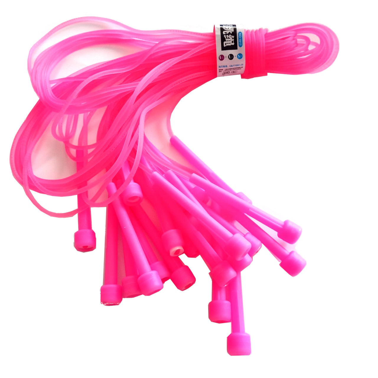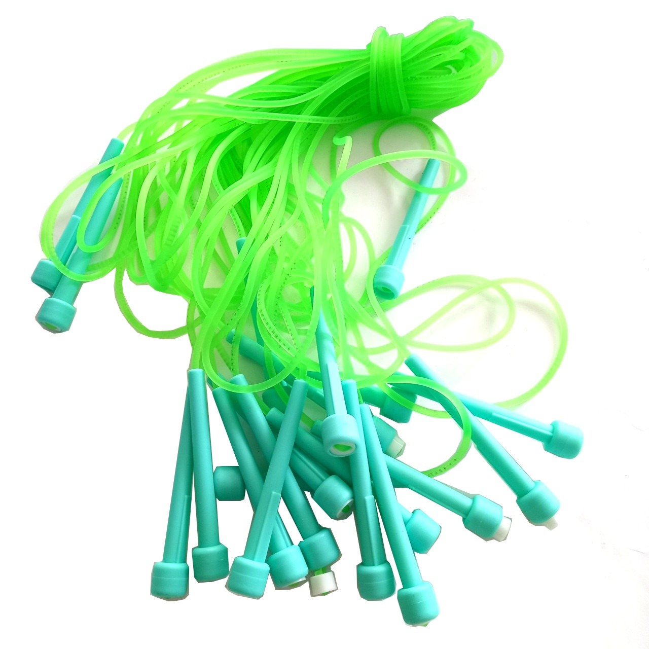Скакалка виконана із ТПЕ-шнура насичених відтінків. Тонкі пластикові ручки мають зовнішній отвір, через який можна регулювати довжину шнура. Скакалки продаються упакуванням по 10 штук. Скакалка застосовується як для дитячих розваг та ігор, так і для спортивних тренувань.