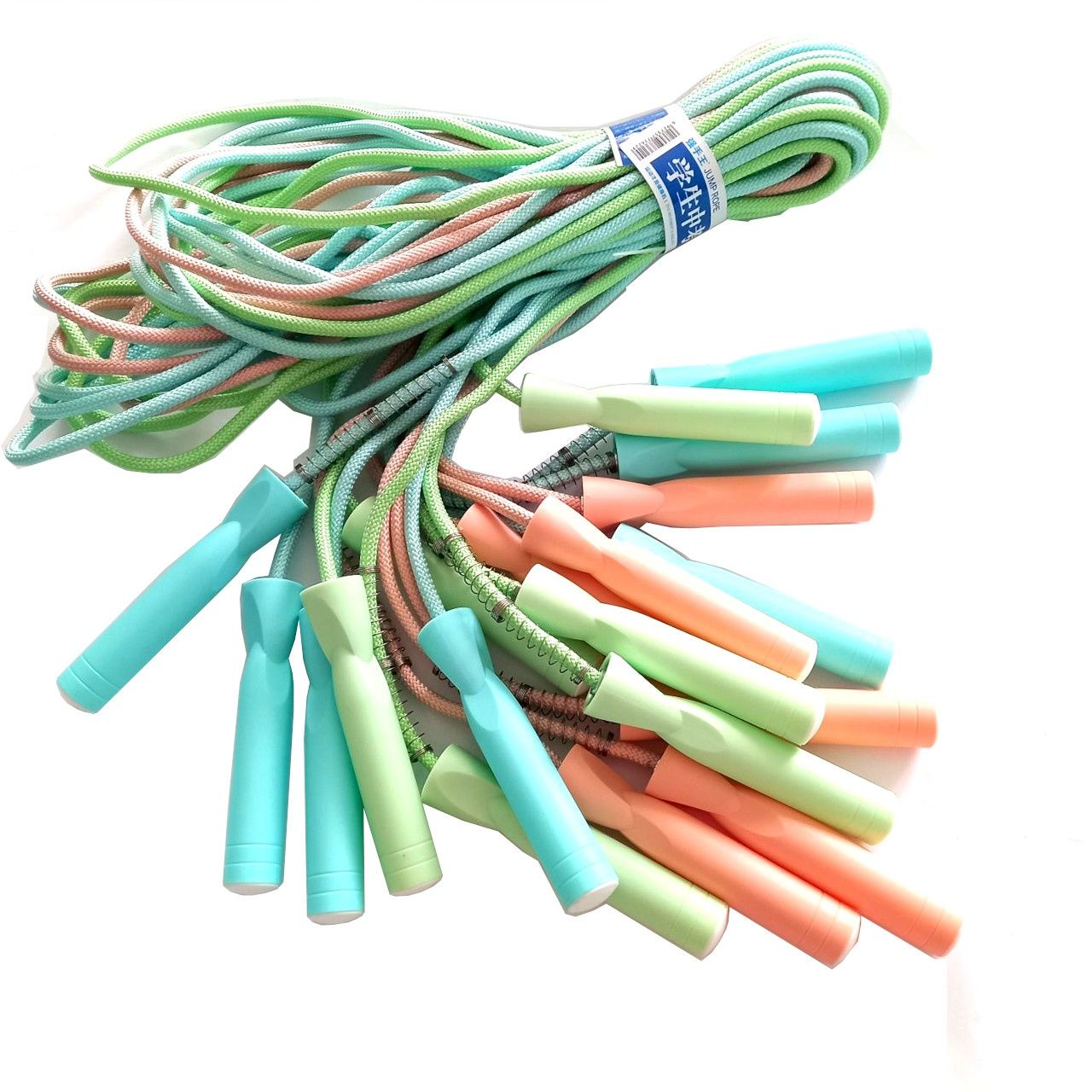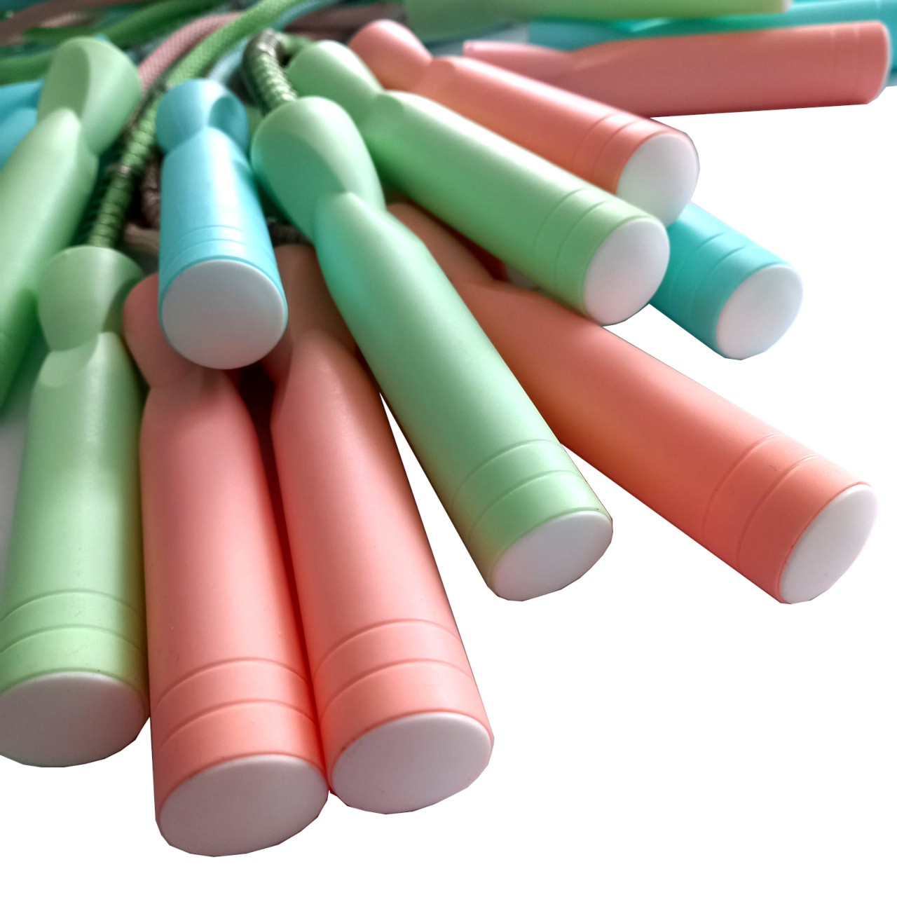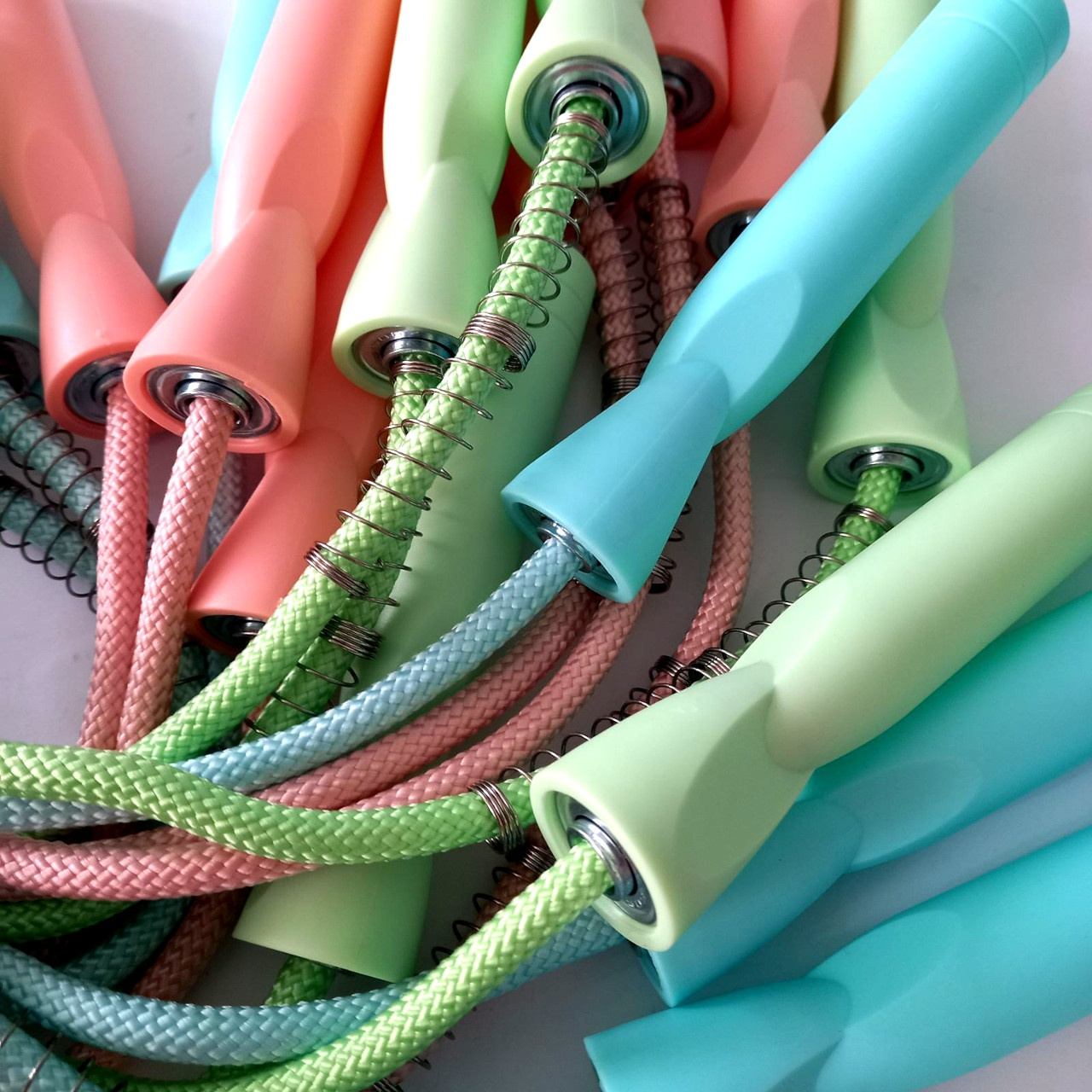 Шнур скакалки виготовлений з комбінації бавовни, нейлону та поліестеру щільного плетіння, ручки скакалки – із пластику. Скакалка доповнена пружинкою для запобігання скручуванню. Для зручності обертання та швидкості стрибків у ручках передбачений підшипник. Скакалки продаються упаковками по 10 штук