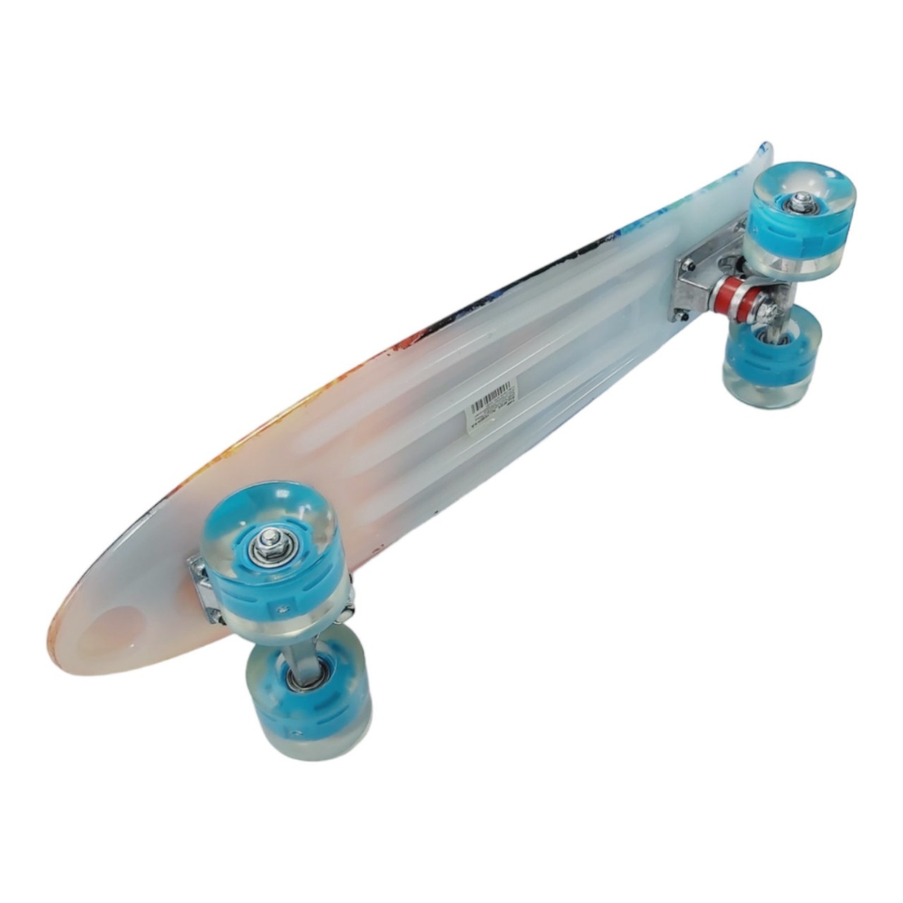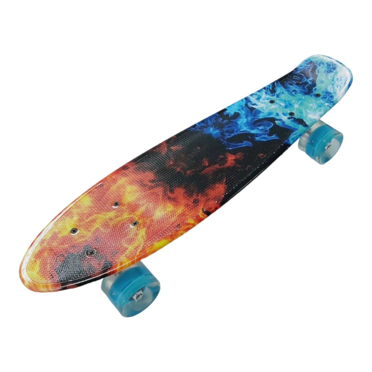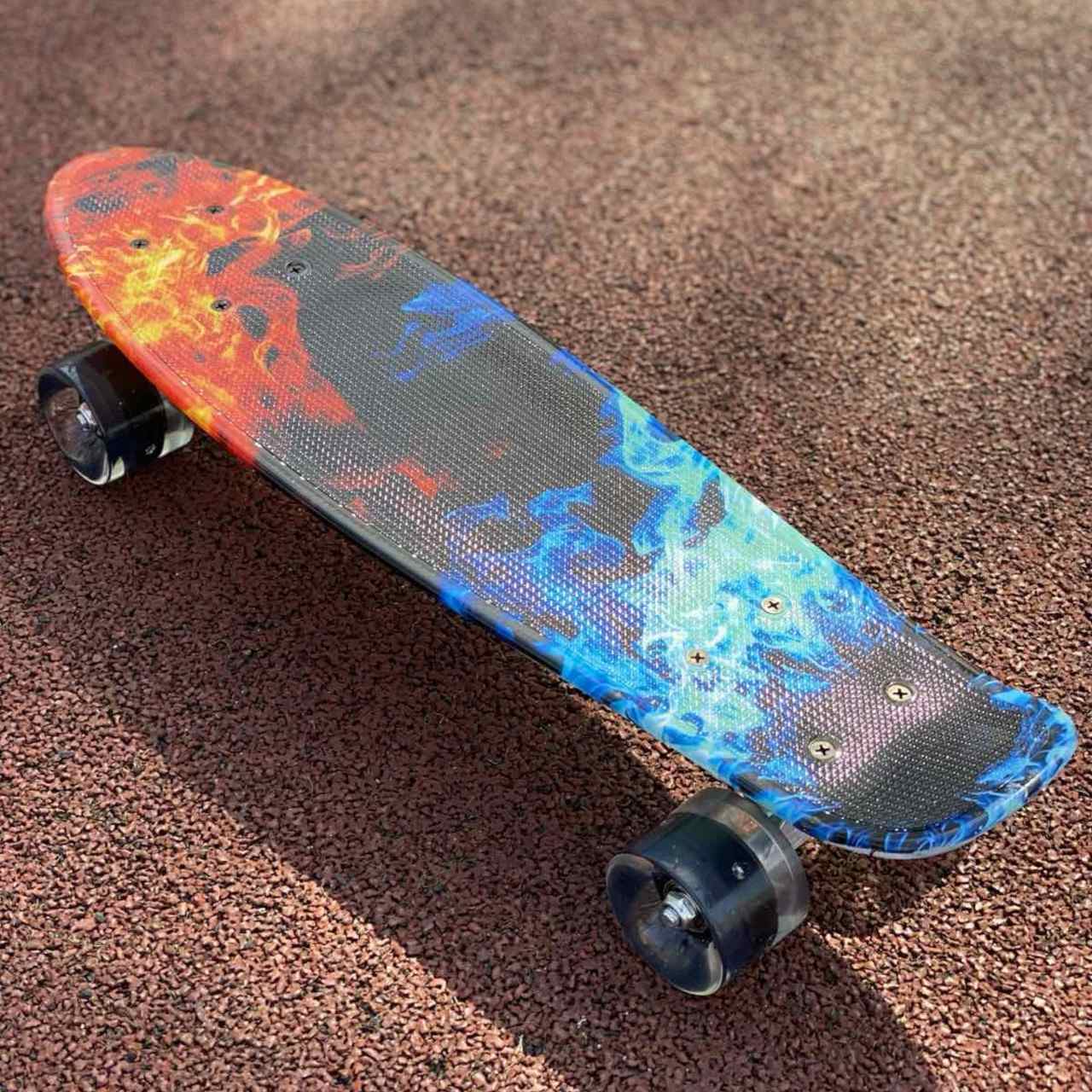 Скейт із декою загнутою з однієї, хвостової частини. На ньому можна зручно кататися вулицями міста. Міні-круїзер має зручні габарити, що дозволяє пристібати їх до рюкзака спеціальними ременями або носити в чохлі. Колеса на міні-скейті світяться при обертанні коліс. Широкі PVC колеса забезпечують приємне та комфортне катання. Відмінний накат дошці додають підшипники ABEC-7. На деку нанесений малюнок, що надає стильного вигляду.