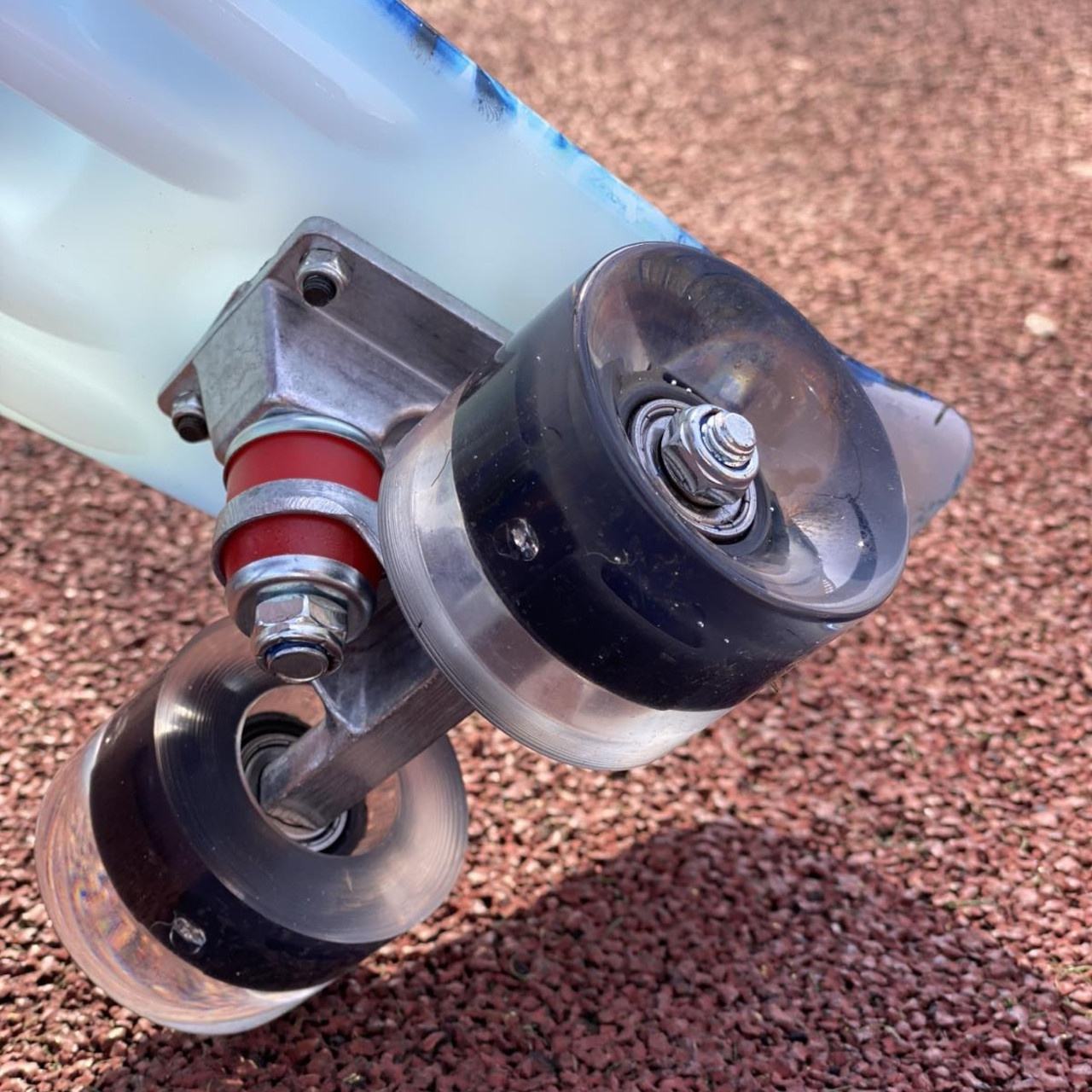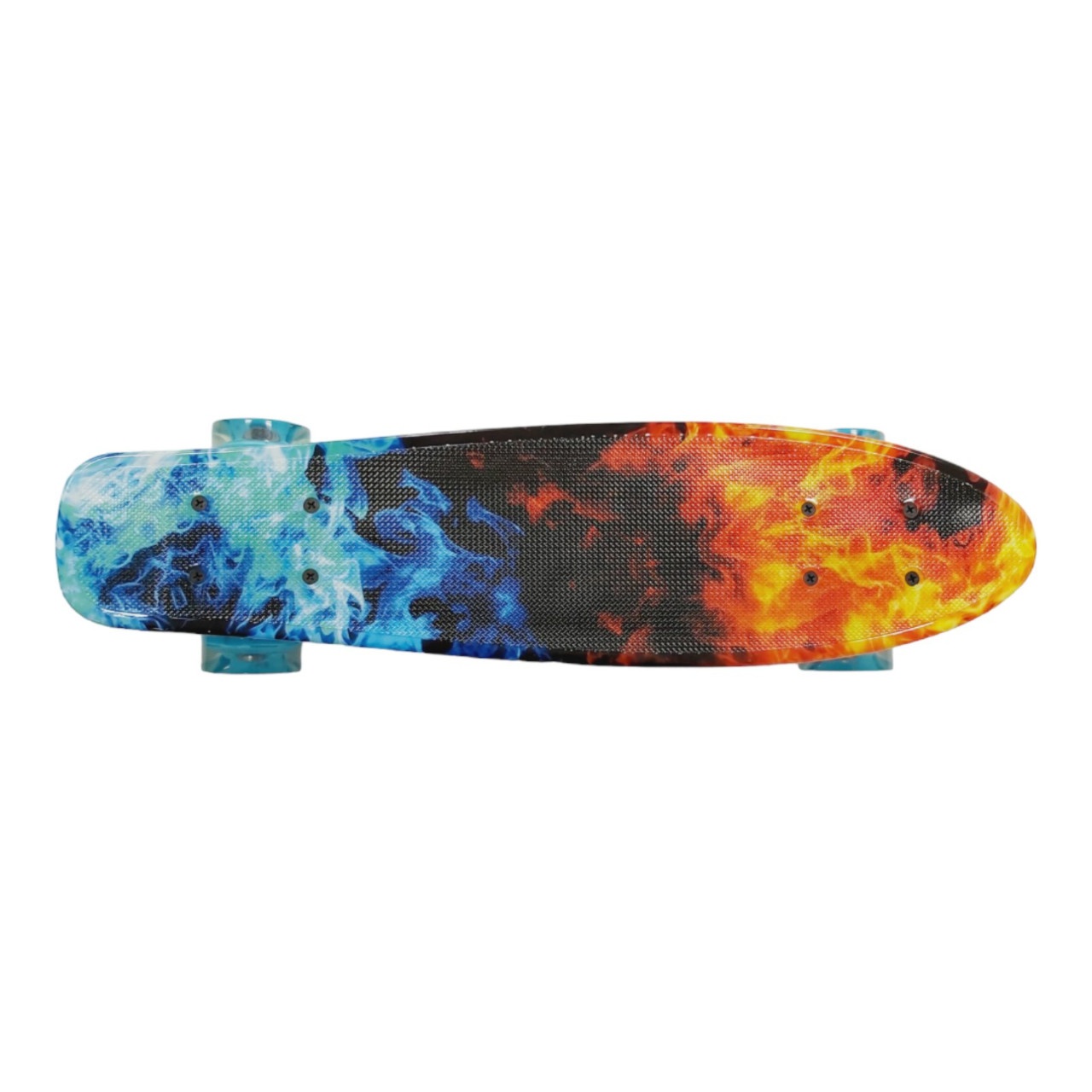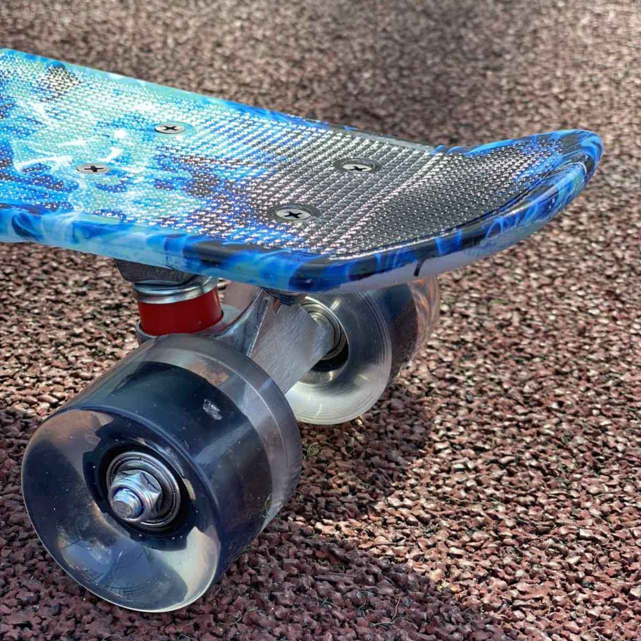 Скейт із декою загнутою з однієї, хвостової частини. На ньому можна зручно кататися вулицями міста. Міні-круїзер має зручні габарити, що дозволяє пристібати їх до рюкзака спеціальними ременями або носити в чохлі. Колеса на міні-скейті світяться при обертанні коліс. Широкі PVC колеса забезпечують приємне та комфортне катання. Відмінний накат дошці додають підшипники ABEC-7. На деку нанесений малюнок, що надає стильного вигляду.