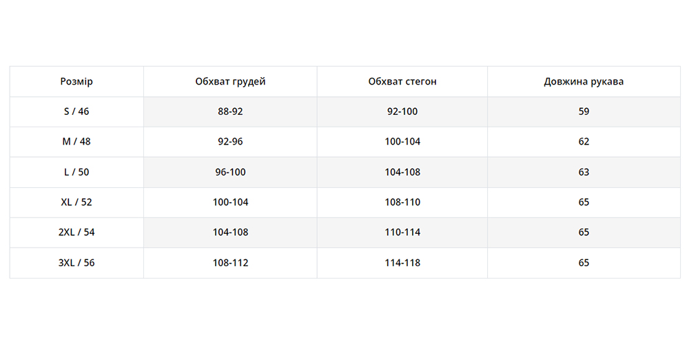| Розмір | S, M, L, XL, XXL, 3XL |