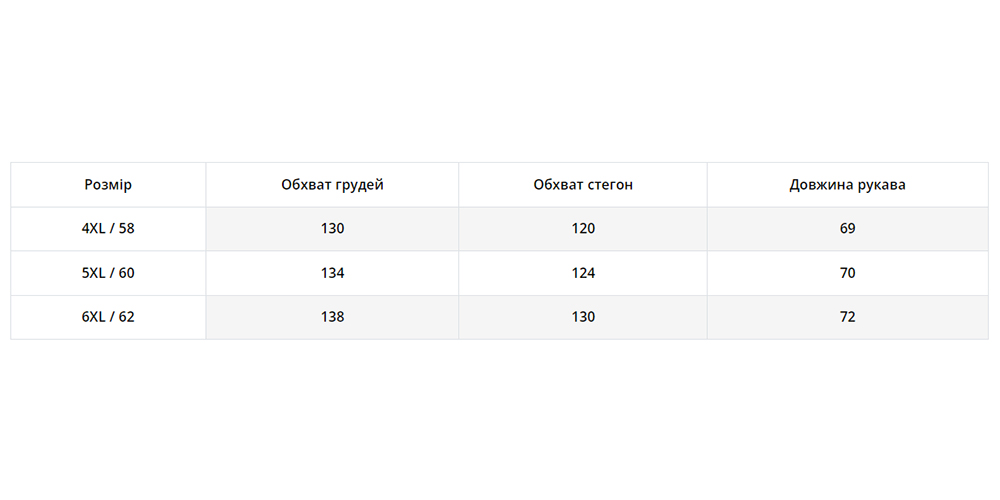 | Розмір | 4XL, 5XL, 6XL |