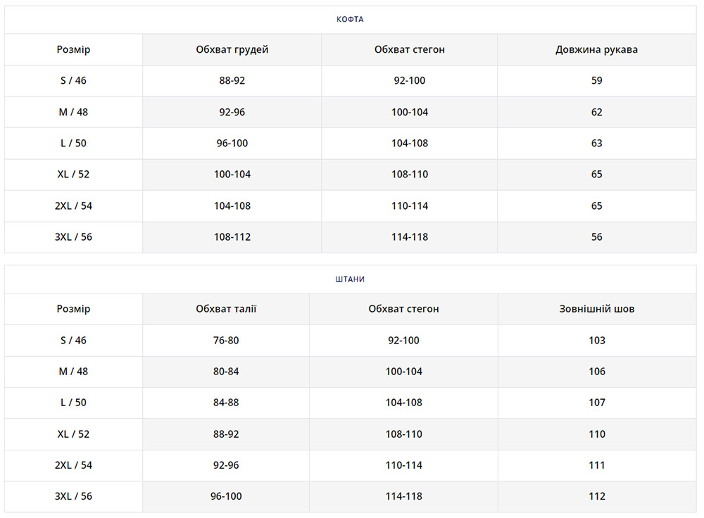 | Розмір | S, M, L, XL, XXL, 3XL |