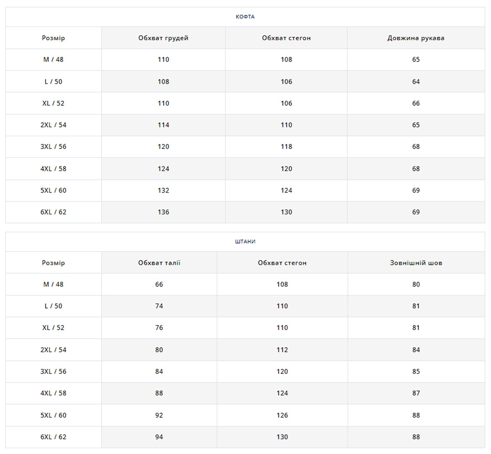 | Розмір | M, L, XL, XXL, 5XL, 6XL |