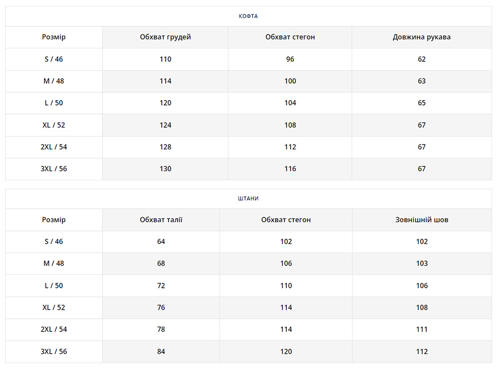 | Розмір | S, M, L, XL, XXL, 3XL |