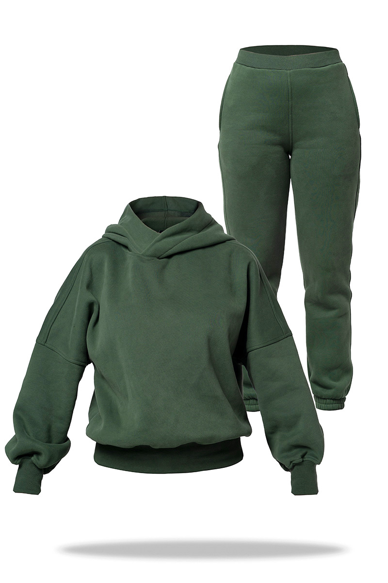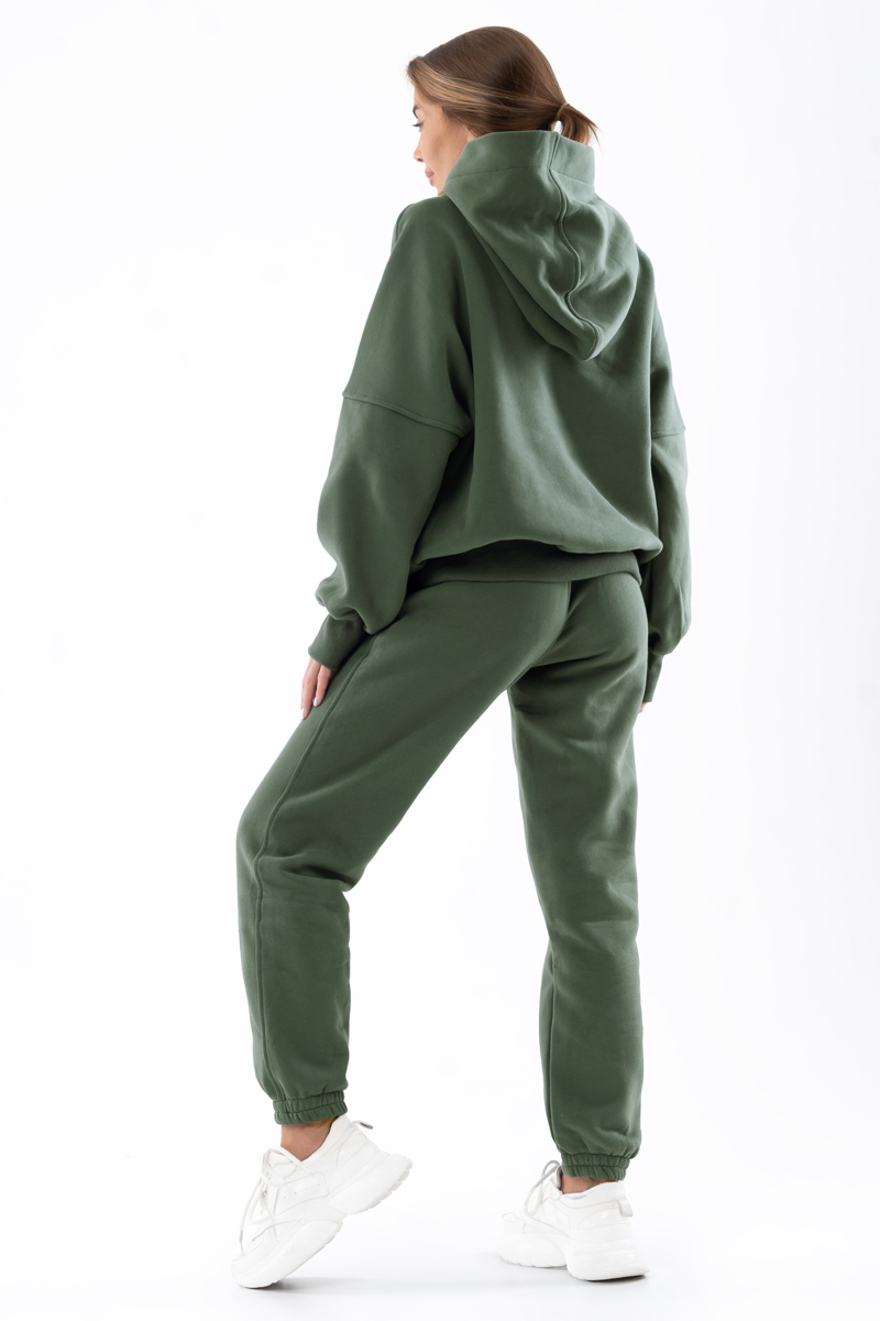 Спортивний костюм жіночий Freever AF 5613 хакі – втілення затишку, свободи та комфорту. Однаково добре підходить для дому, тренувань, прогулянок. Ми впевнені, що цей утеплений комплект стане найзручнішим та найбажанішим одягом серед речей вашого гардероба для холодної пори року. Верх і низ виготовлені з м’якого щільного трикотажу на основі бавовни (трьохнитка з начосом). Матеріал добре зігріває, повторює кожен ваш рух, чудово тримає форму. Особливість худі – цільний каптур, рукави реглан, низ та манжети виконані з широкої трикотажної гумки. У штанів висока посадка, пояс з еластичної трикотажної гумки, а низ під гумку. Рекомендації по догляду: делікатне прання при температурі не вище 30° гелеподібними засобами для кольорових тканин при локальному забрудненні попередньо можна використовувати рідкий засіб для виведення плям без вмісту хлору віджимання на низьких оборотах не сушити в сушильній машині