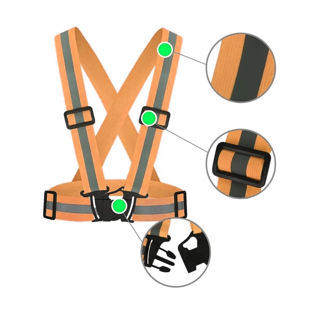 Жилет оранжевий пошитий із застосуванням світловідбиваючої стрічки. Виріб призначений для того, щоб зробити людину помітною в умовах темряви або негоди.