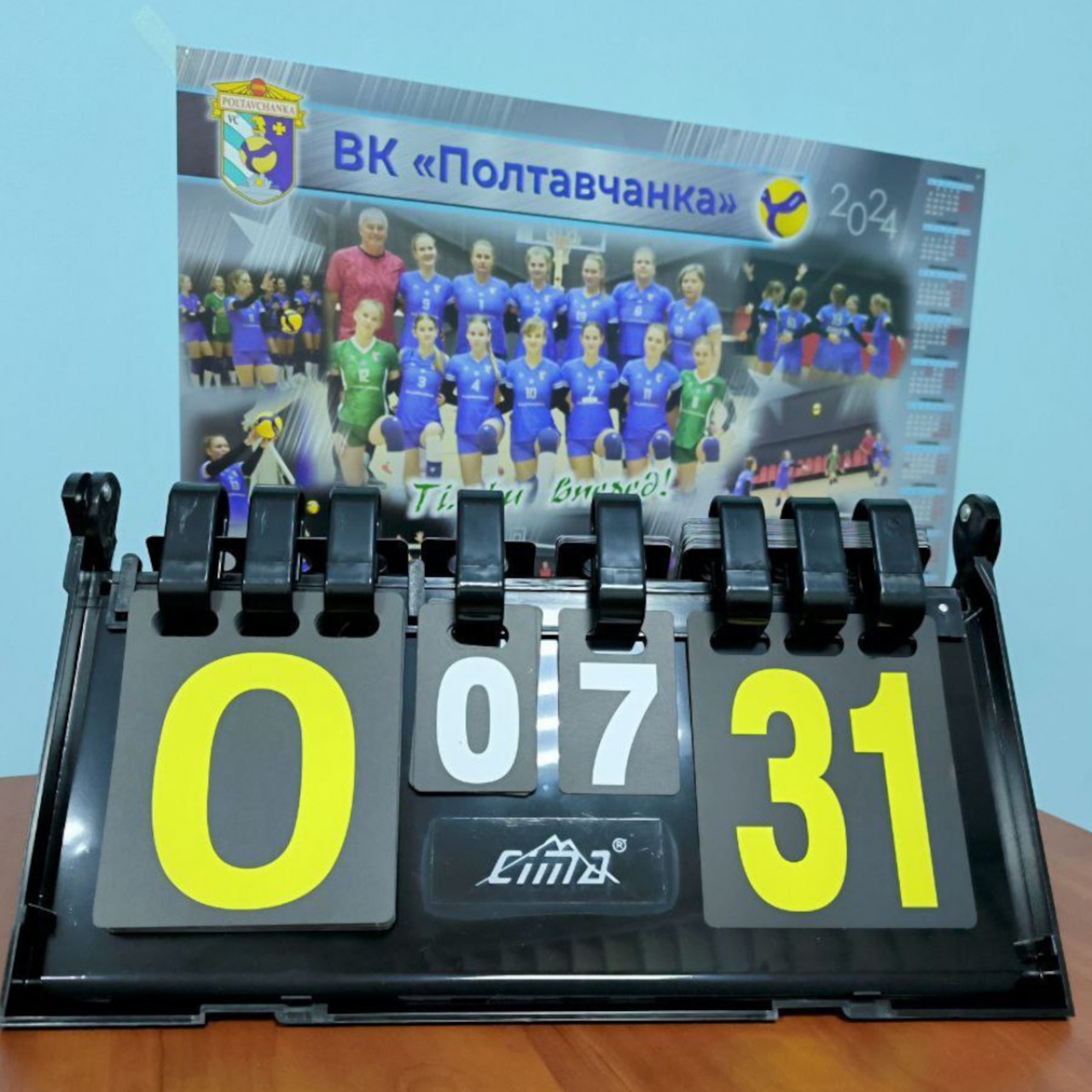 Табло перекидне для рахунку складне на кнопках виготовлене із щільного картону в ПВХ, кільця – з металу. Відображає рахунок партій (від 0 до 5), рахунок у партії (від 0 до 31).