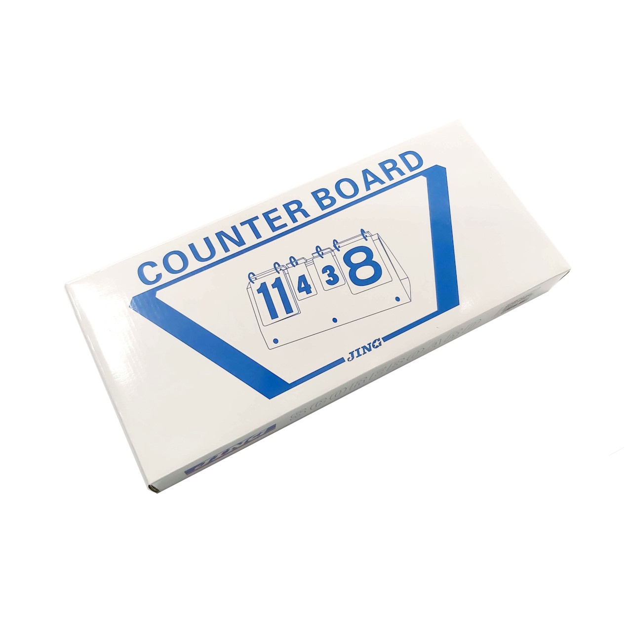 Табло перекидне для рахунку складне на кнопках виготовлене із щільного картону в ПВХ, кільця – з металу. Відображає рахунок партій (від 0 до 7), рахунок у партії (від 0 до 30).