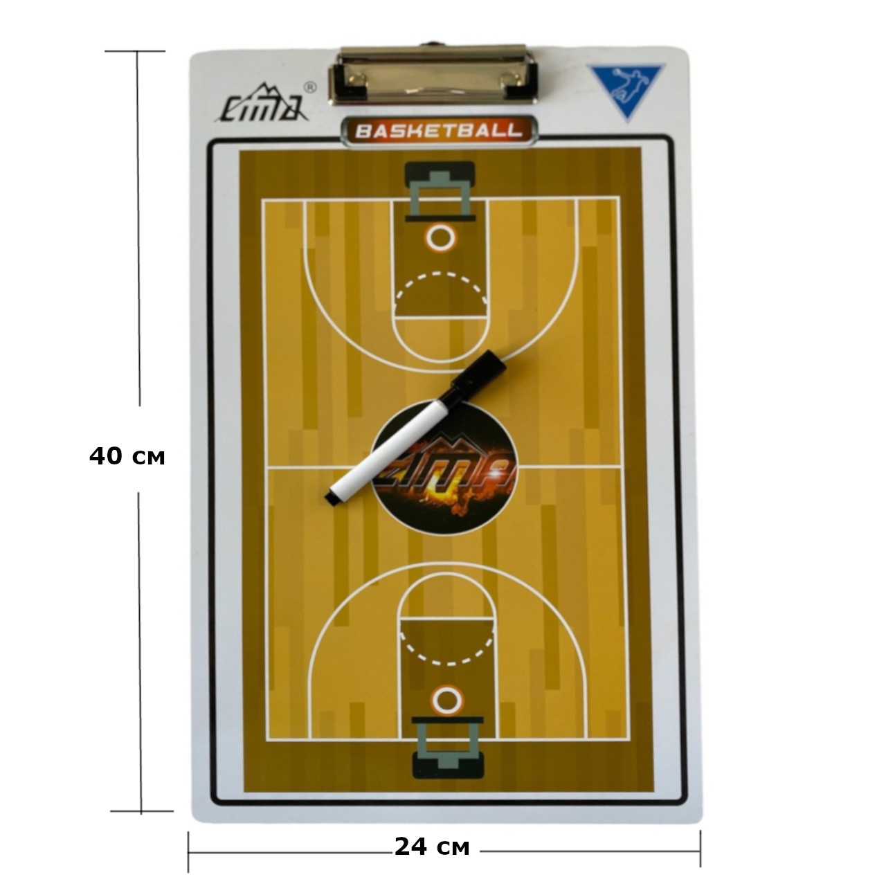 Тактичний двосторонній тренерський планшет з імітацією баскетбольного майданчика використовується у тренувальному та змагальному процесі для малювання тактичних схем гри команди. У комплекті постачається маркер.
