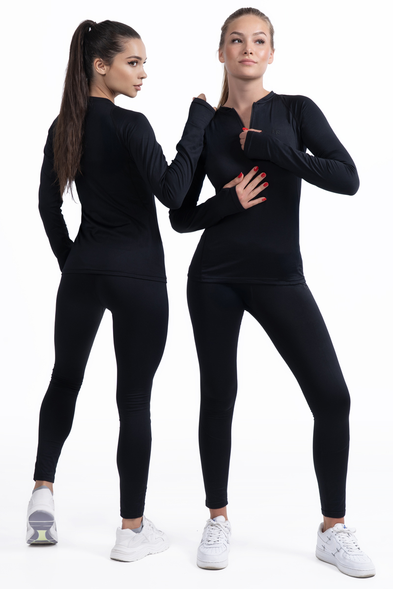 Женское термобелье Freever NF 5718 черное (комплект) — функциональная базовая одежда для активного отдыха и повседневного использования в холодное время года. Комплект состоит из длинного лонгслива с молнией на воротнике и леггинсов, выполненных из эластичного и приятного к телу материала, эффективно сохраняющего тепло и отводящего влагу.