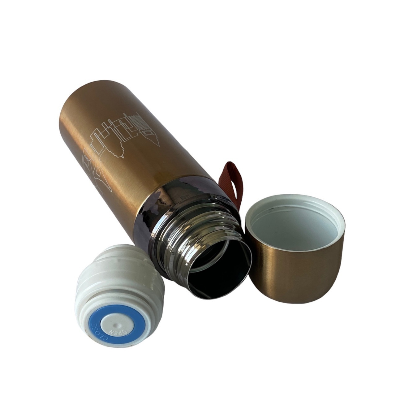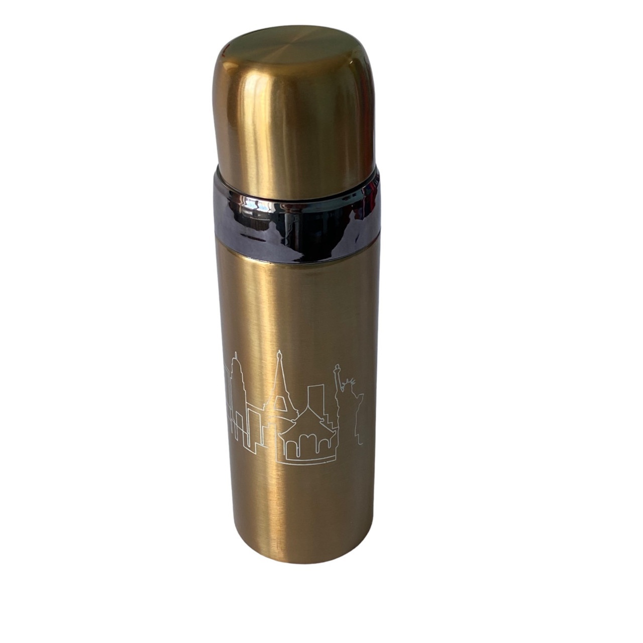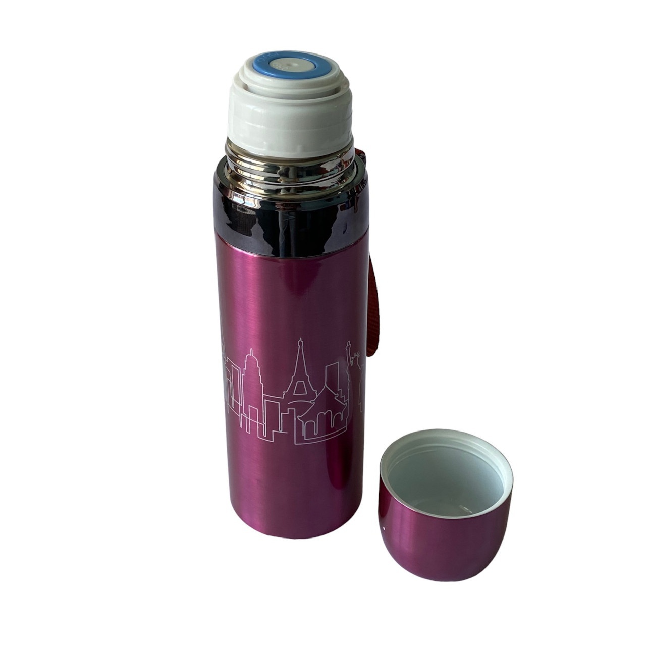 Термос для напоїв ємністю 500 мл виконаний із довговічної нержавіючої сталі. Подвійна вакуумна стінка та пробка з термоізолятором дозволяють термосу тримати тепло чи холод довгий час. Конструкція термоса передбачає кришку, що відкручується, і ситечко для заварки. Завдяки оптимальній конструкції кришка термоса щільно прилягає до шийки, забезпечуючи 100% герметичність.