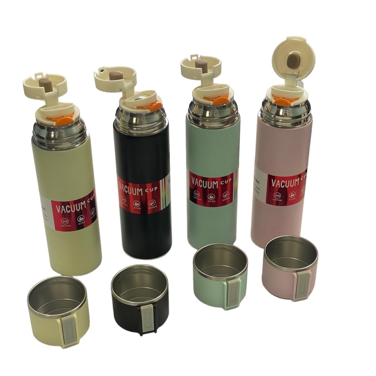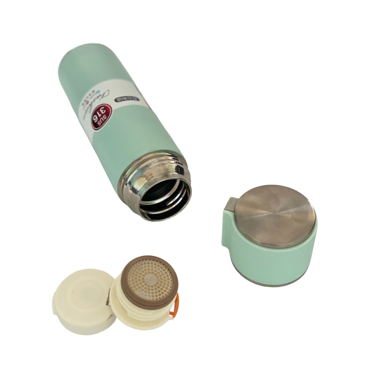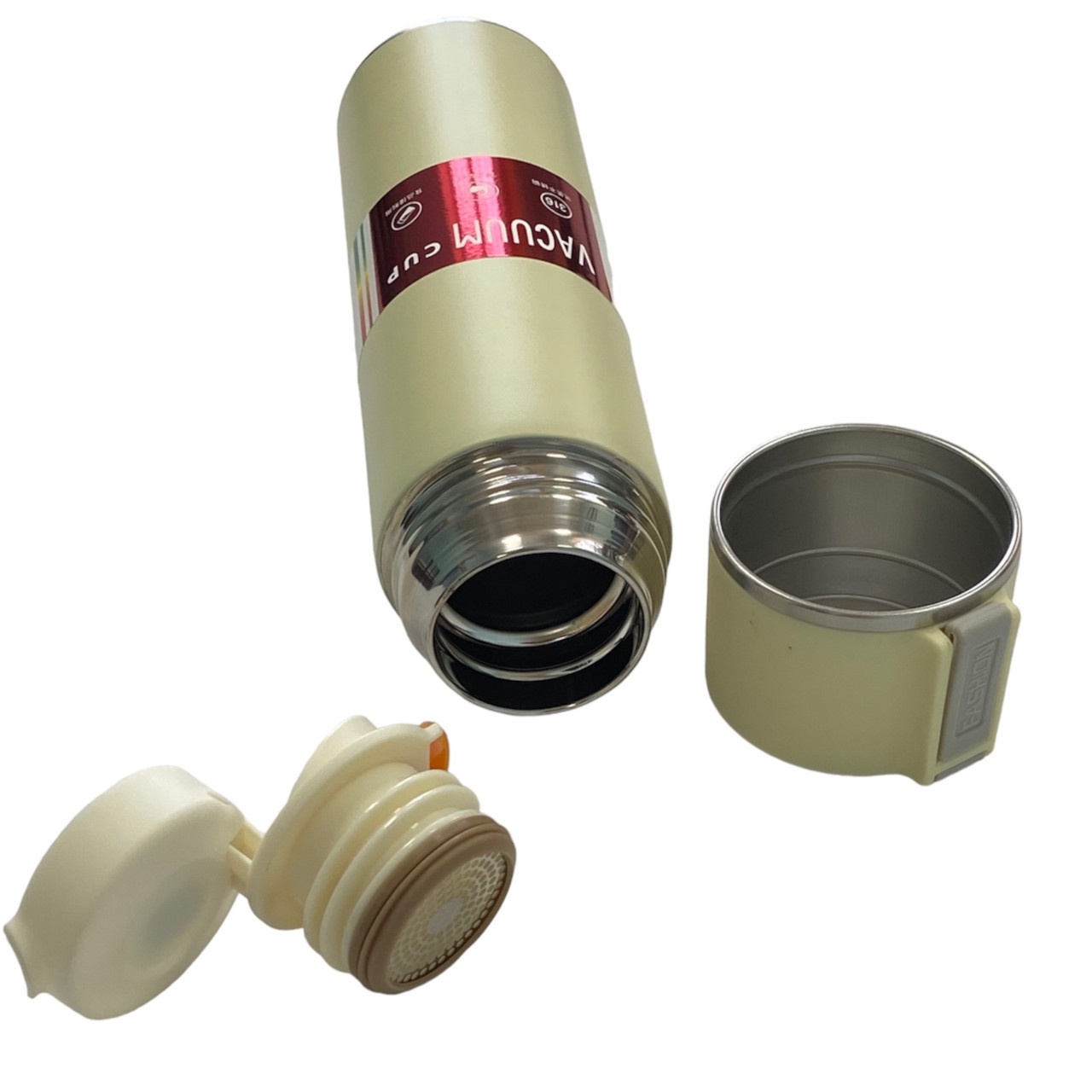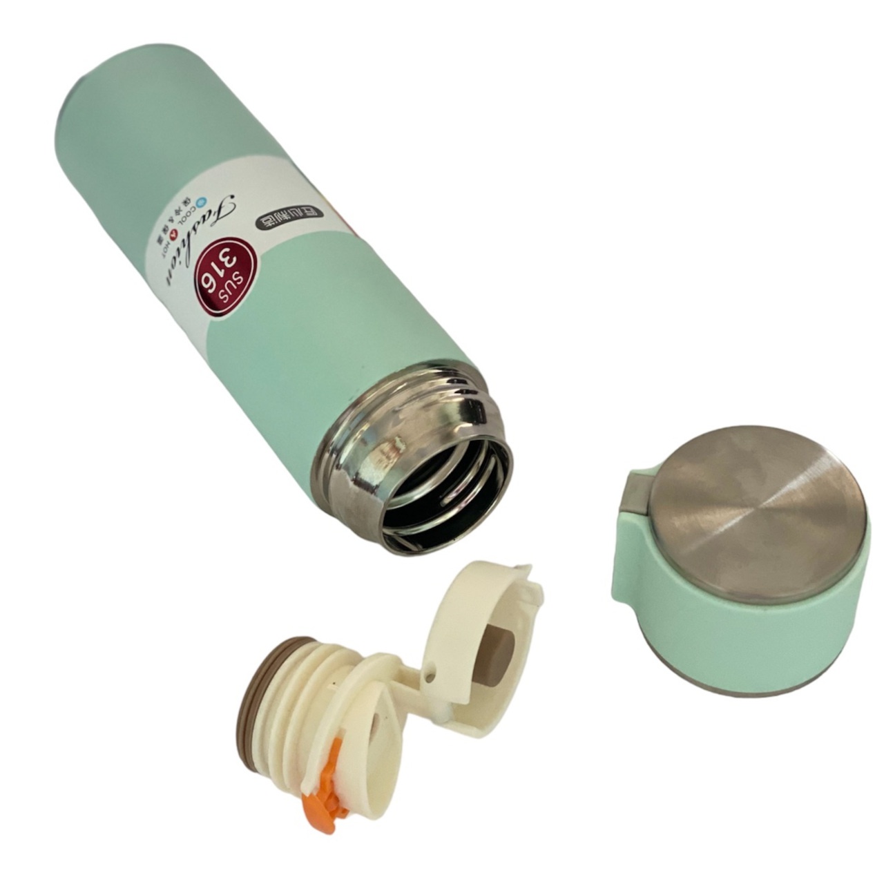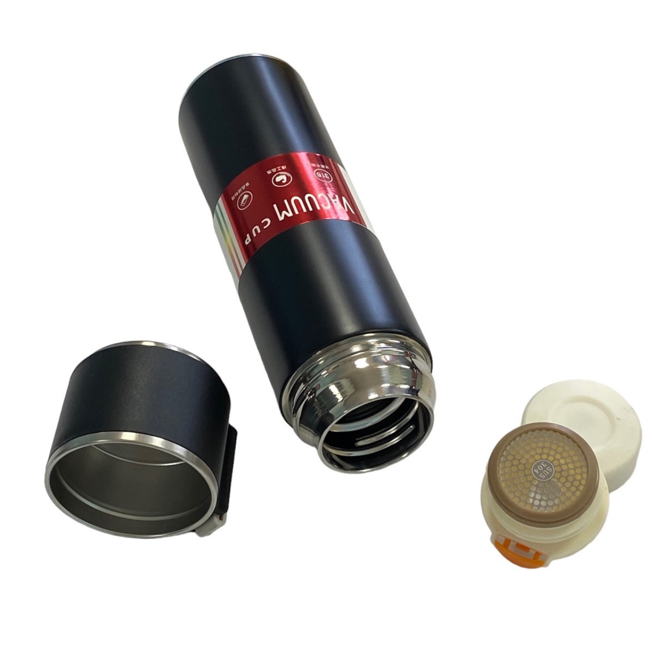 Термос для напоїв об’ємом 500 мл виконаний із довговічної нержавіючої сталі. Подвійна вакуумна стінка та пробка з термоізолятором дозволяють термосу тримати тепло чи холод довгий час. Надійна пробка з кнопкою забезпечує легше використання термоса. Завдяки оптимальній конструкції кришка термоса щільно прилягає до шийки, забезпечуючи 100% герметичність.