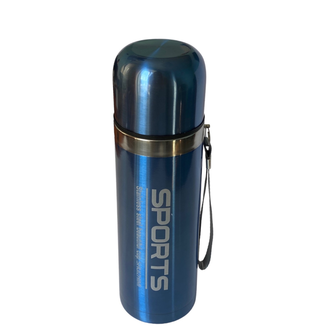 Термос для напоїв об’ємом 750 мл виконаний із довговічної нержавіючої сталі. Подвійна вакуумна стінка та пробка з термоізолятором дозволяють термосу тримати тепло чи холод довгий час. Надійна пробка з кнопкою забезпечує легше використання термоса. Завдяки оптимальній конструкції кришка термоса щільно прилягає до шийки, забезпечуючи 100% герметичність. Кришку можна використовувати як стаканчик. На зовнішній поверхні термоса нанесений надпис. Термос має трикотажний ремінець для зручності утримання.