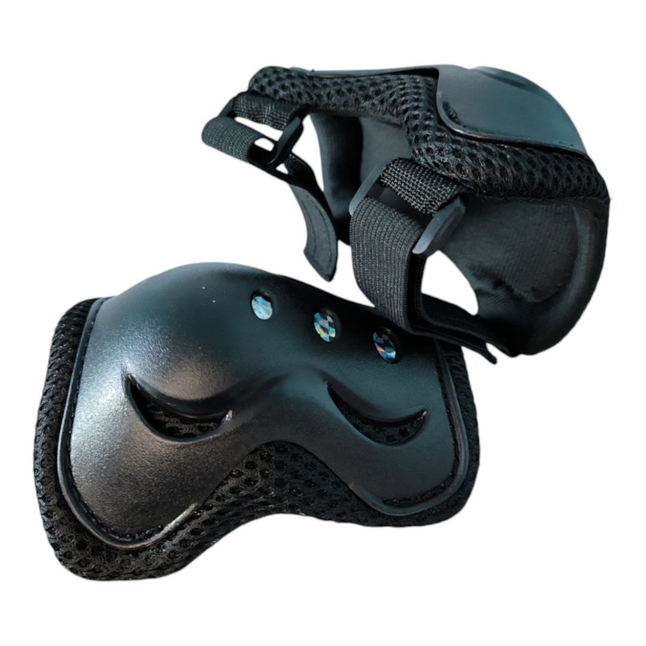 Комплект захисного спорядження складається із захисту ліктів, колін та зап’ясть. Цей комплект захисту призначений для активного відпочинку, такого як катання на скейтборді, роликових ковзанах і т.д. Всі деталі оснащені приємною м’якою та амортизуючою піною EVA. Вгорі та внизу наколінників та налокітників є широкі ремені, за допомогою яких можна відрегулювати оптимальну посадку.