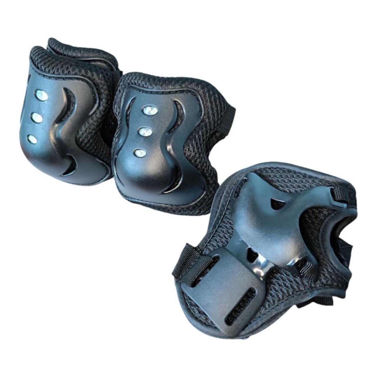 Комплект захисного спорядження складається із захисту ліктів, колін та зап’ясть. Цей комплект захисту призначений для активного відпочинку, такого як катання на скейтборді, роликових ковзанах і т.д. Всі деталі оснащені приємною м’якою та амортизуючою піною EVA. Вгорі та внизу наколінників та налокітників є широкі ремені, за допомогою яких можна відрегулювати оптимальну посадку.