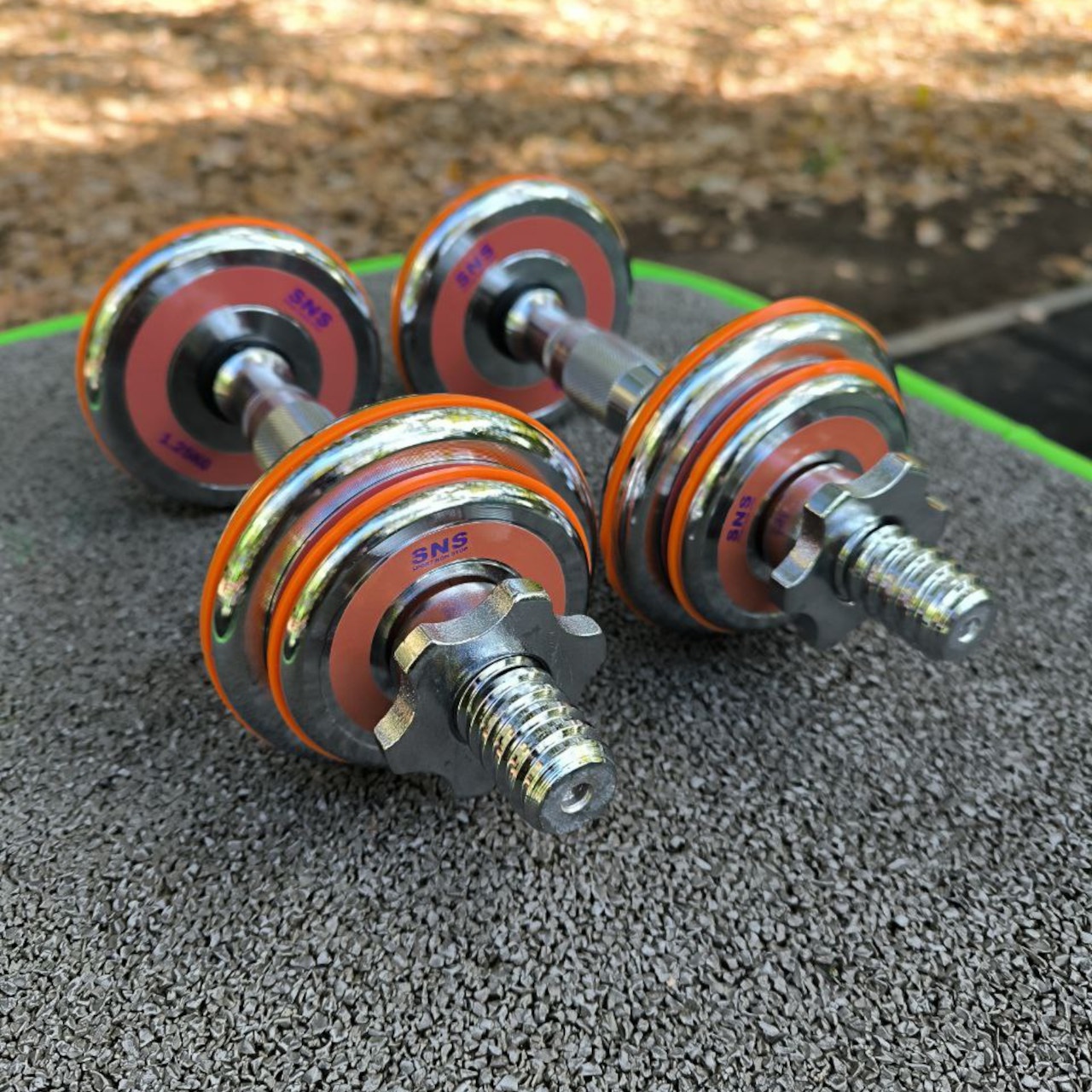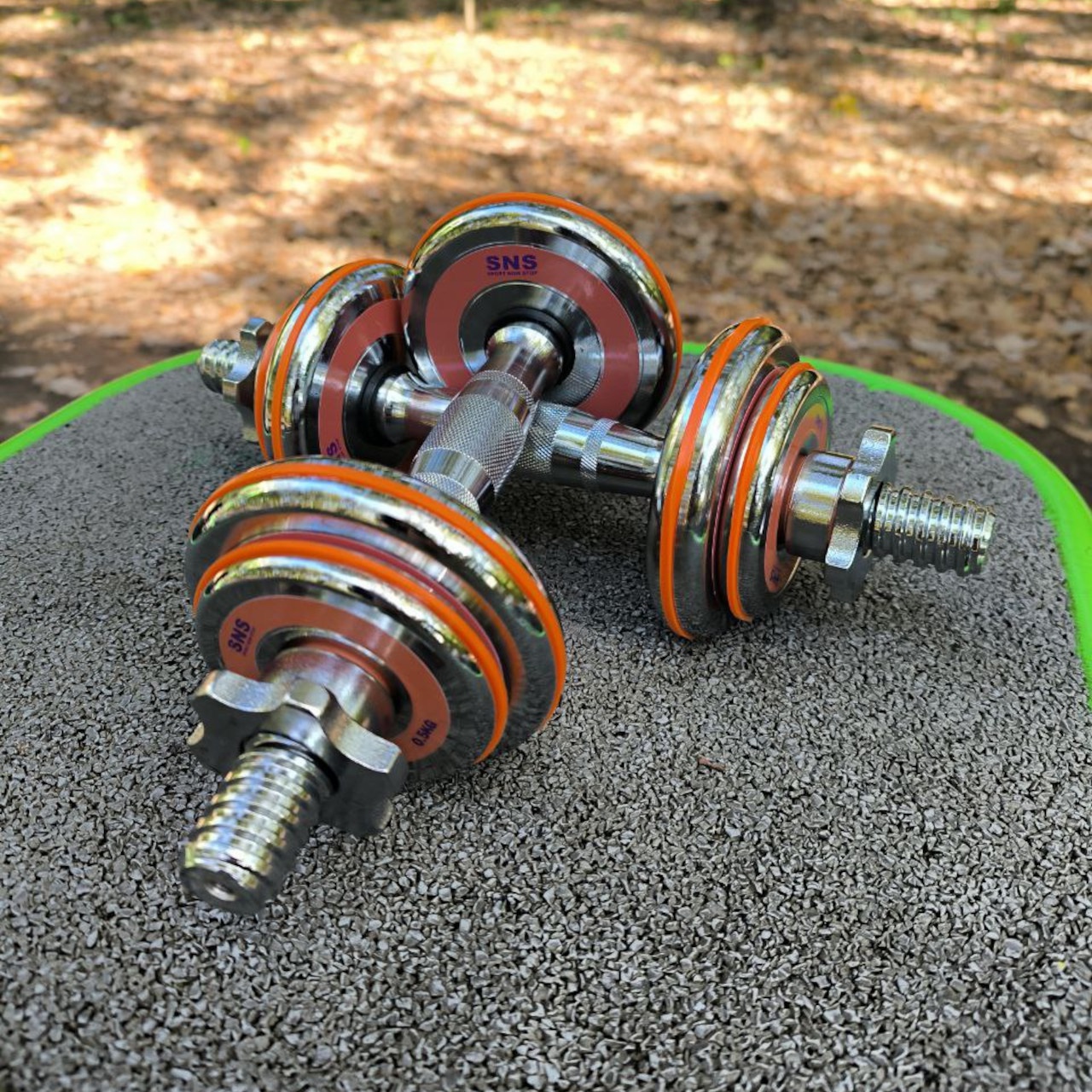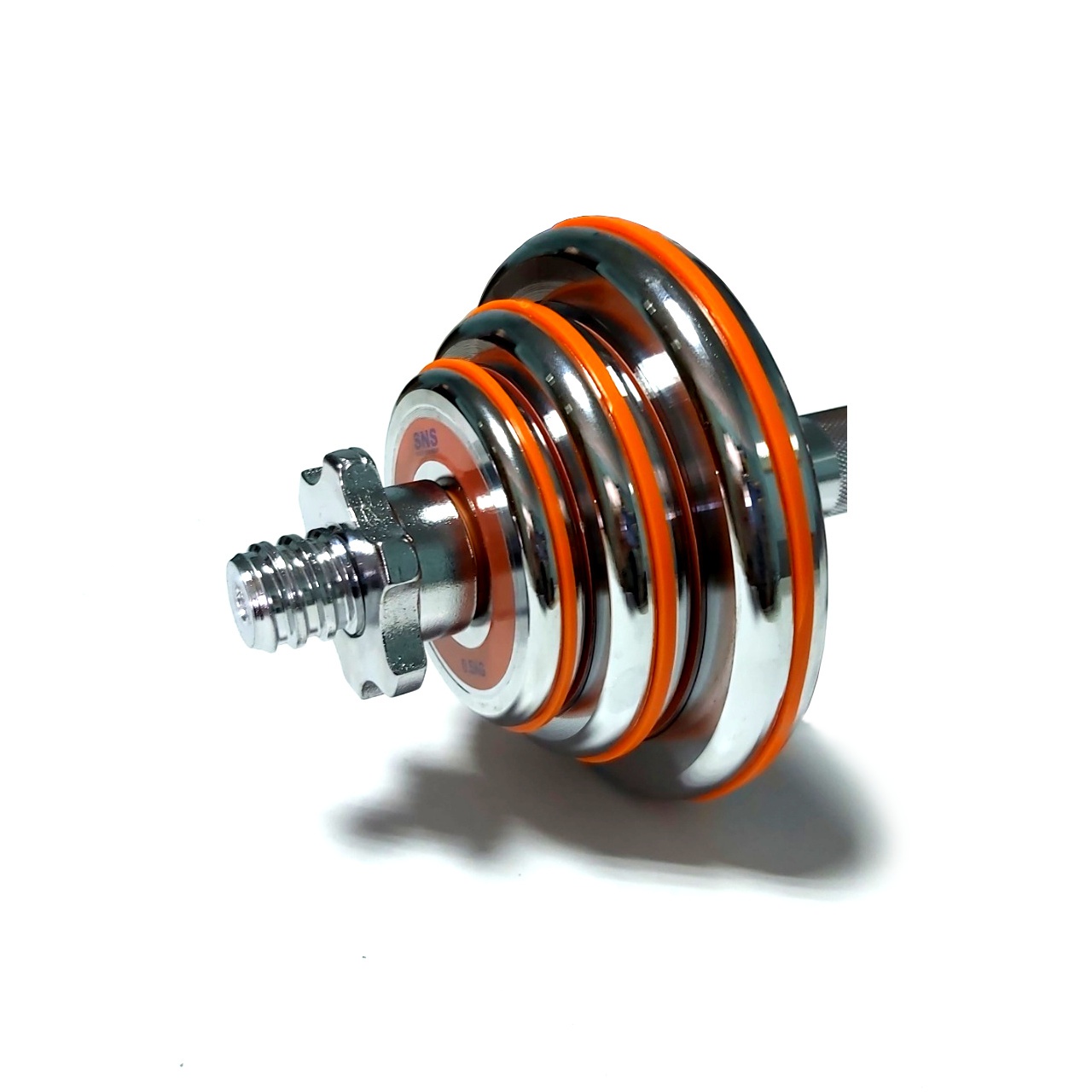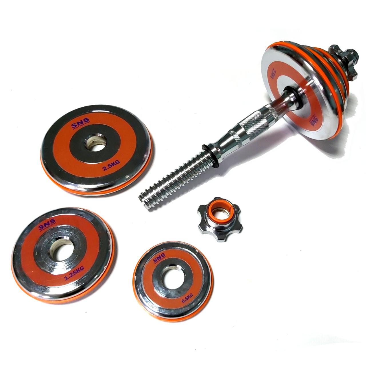 Гантелі розбірні виконані із хромованої сталі. Легка зміна дисків дозволить швидко підібрати оптимальну для себе вагу. Кожен диск доданий оранжевим демфером. Гантелі набір із двох штук допоможуть дзеркально опрацювати м’язи, вони зручні у використанні. Гантелі мають гриф із насічками, що забезпечує більше зчеплення з долонями.