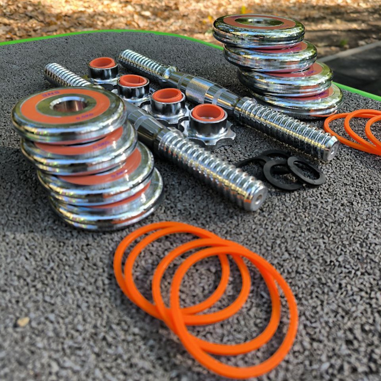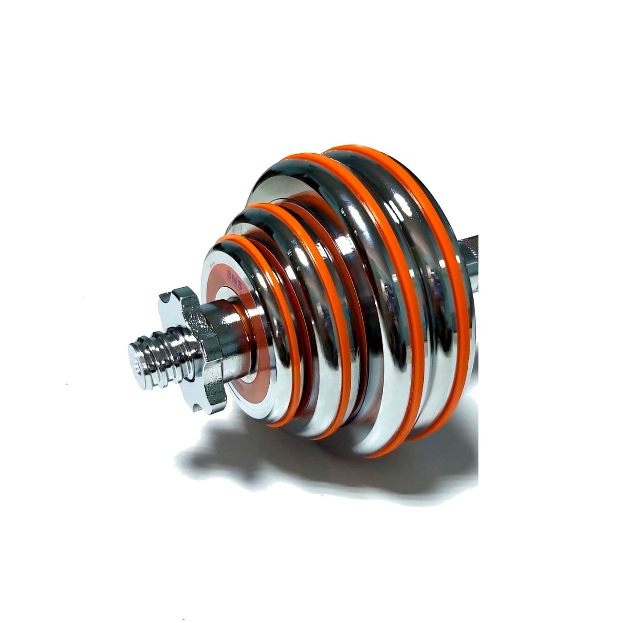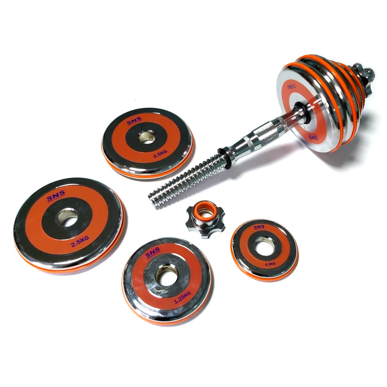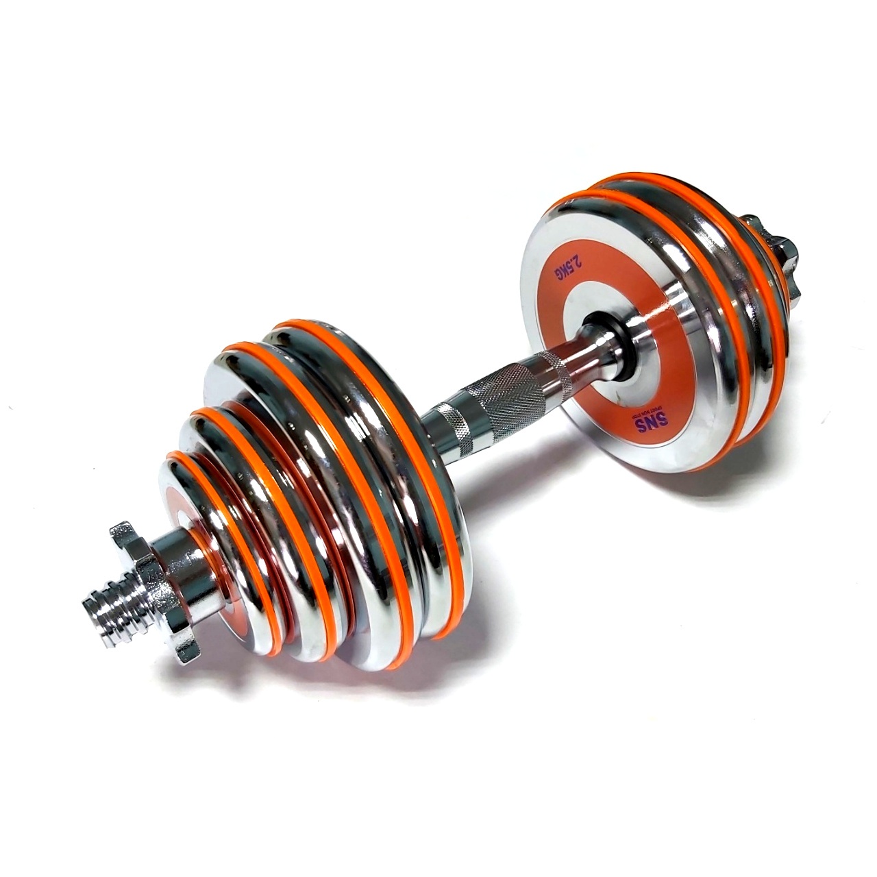 Гантелі розбірні виконані із хромованої сталі. Легка зміна дисків дозволить швидко підібрати оптимальну для себе вагу. Кожен диск доданий оранжевим демфером. Гантелі набір із двох штук допоможуть дзеркально опрацювати м’язи, вони зручні у використанні. Гантелі мають гриф із насічками, що забезпечує більше зчеплення з долонями.