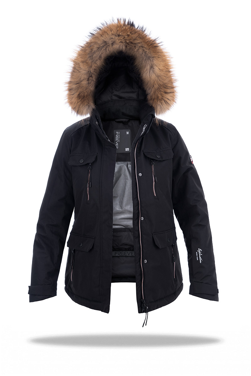 Жіноча гірськолижна куртка Freever AF 21768 чорна – стильна модель для схилів та міста. Особливість – необмежена свобода рухів, надійний захист, бездоганний крій, гарне оздоблення натуральним хутром. Водонепроникний мембранний верх надійно захищає від негоди. Водночас матеріал легко дихає і швидко відводить назовні зайву пару від тіла. Термопідкладка на інноваційному синтетичному утеплювачі ефективно зберігає ваше тепло. Високий комір-стійка зі знімним утепленим капюшоном і зручними подвійними манжетами обіцяють високий рівень комфорту. Головний убір прикрашений натуральним хутром, яке можна зняти. Куртка застібається на двозамкову блискавку та вітрозахисну планку на кнопках. На рукаві передбачена кишеня для скіпас. Ще 4 зовнішні кишені забезпечують місце для зберігання важливих дрібниць. Передбачена снігова спідниця та система вентиляції під рукавами. Усі шви проклеєні, а застібки-блискавки – ламіновані. Рекомендації по догляду: делікатне прання при температурі не вище 30° гелеподібними засобами для кольорових тканин при локальному забрудненні попередньо можна використовувати рідкий засіб для виведення плям без вмісту хлору віджимання на низьких оборотах не сушити в сушильній машині