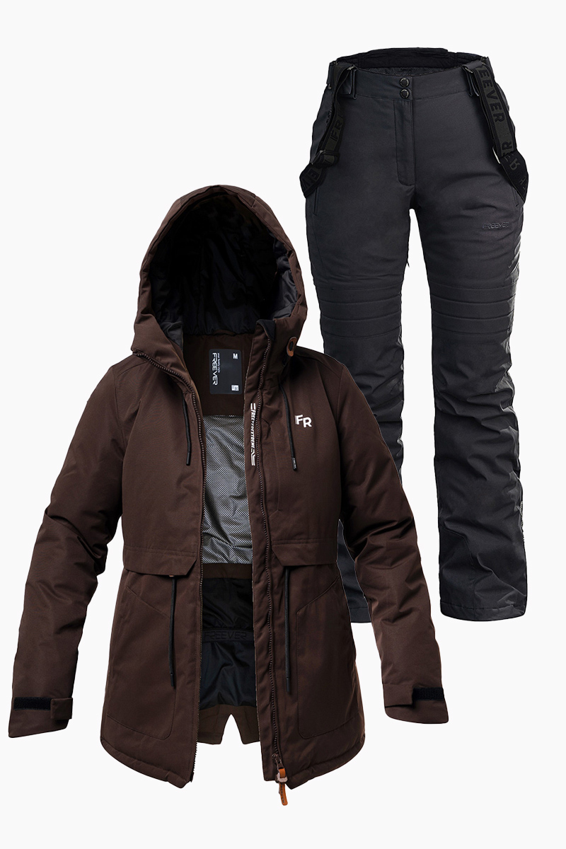 Пориньте у світ захоплюючого лижного відпочинку у новому жіночому лижному костюмі FREEVER 21767-21652 коричневого кольору. Елегантний дизайн, високоякісні матеріали та технології для максимального комфорту. Перед вами стильне та функціональне екіпірування з нової колекції. Завдяки вітро- та водостійкій мембрані у поєднанні з інноваційною підкладкою на штучному утеплювачі ви почуватиметеся на лижному схилі тепло, затишно та комфортно. Костюм не боїться води та надійно захищає від вітру. Куртка застібається на центральну застібку з двома бігунками. Утягування з фіксаторами є на капюшоні та по лінії талії. Виріб доповнюють: подвійні манжети, снігозахисна спідниця, кишеня для ski-pass на рукаві, кишеня для маски плюс ще 3 внутрішні та 4 зовнішні кишені для необхідних речей. Штани регулюються в поясі. Передбачені петлі під ремінь та знімні регульовані підтяжки. Низ посилено міцними накладками від порізів кантів лиж. Артикульований крій колін забезпечує потрібну свободу під час катання. Шви проклеєні із внутрішньої сторони. Передбачені 2 зовнішні кишені та вентиляція на блискавці з внутрішньої сторони стегна. Рекомендації по догляду: делікатне прання при температурі не вище 30° гелеподібними засобами для кольорових тканин при локальному забрудненні попередньо можна використовувати рідкий засіб для виведення плям без вмісту хлору віджимання на низьких оборотах не сушити в сушильній машині можлива хімчистка